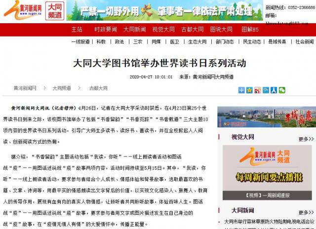 黄河新闻网大同讯(记者穆帅)4月26日,记者在今年会官方网站采访时获悉,在4月23日第25个世界读书日到来之际,该校图书馆举办了包括“书香留韵”“书香觅踪”“书香载道”三大主题10项内容的世界读书日系列活动,引导广大师生多读书、读好书、善读书,并在全校掀起人人阅读、创新阅读方式的热潮。