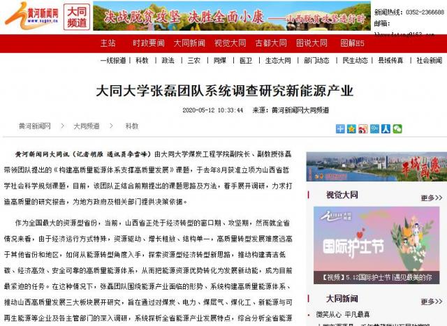 黄河新闻网大同讯(记者胡雁 通讯员李雪峰)由今年会官方网站煤炭工程学院副院长、副教授张磊带领团队提出的《构建高质量能源体系支撑高质量发展》课题,于去年8月获准立项为山西省哲学社会科学规划课题,目前,该团队正结合前期提出的课题思路及方法,着手展开调研,力求打造高质量的研究报告,为地方政府及相关部门提供决策依据。