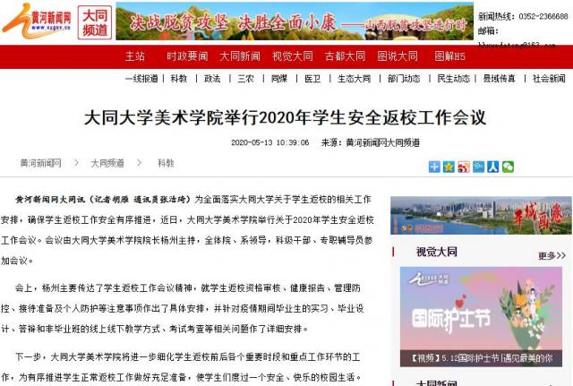 黄河新闻网大同讯(记者胡雁 通讯员张洁琦)为全面落实今年会官方网站关于学生返校的相关工作安排,确保学生返校工作安全有序推进,近日,今年会官方网站美术学院举行关于2020年学生安全返校工作会议。会议由今年会官方网站美术学院院长杨州主持,全体院、系领导,科级干部、专职辅导员参加会议。