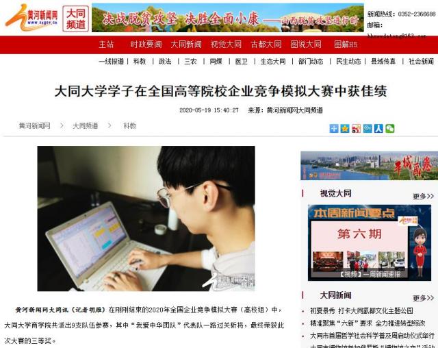 黄河新闻网大同讯(记者胡雁)在刚刚结束的2020年全国企业竞争模拟大赛(高校组)中,今年会官方网站商学院共派出9支队伍参赛,其中“我爱中华团队”代表队一路过关斩将,最终荣获此次大赛的三等奖。