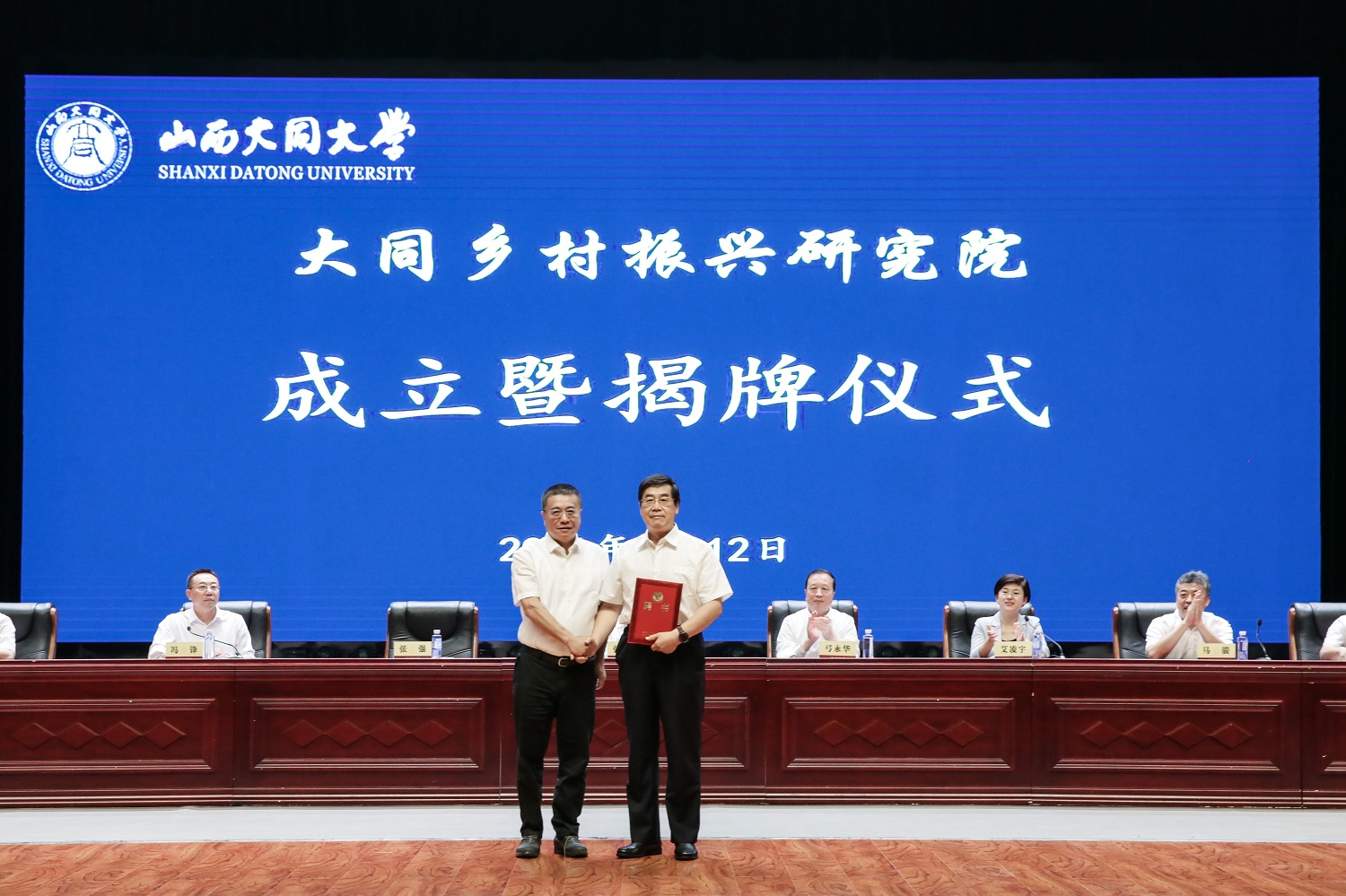 张吉福、弓永华为大同乡村振兴研究院揭牌。