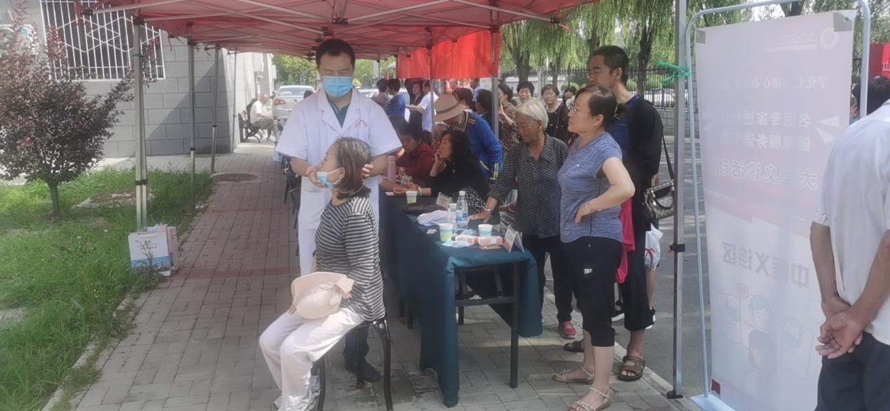 医护人员和义诊专家们一到现场便受到了社区教职工及家属的热烈欢迎,他们纷纷排队等候检查。在义诊现场,专家们和医护人员对教职工及家属热情服务,尽职尽责,充分发挥扎实的专业功底,无论是中医、按摩、测血压、测血糖还是健康咨询都认真聆听患者病情陈述,详细检查部位,耐心细致解答患者提出的健康问题,并询问患者的日常起居和生活习惯,最后根据患者的身体状况给出用药指导。通过义诊能及时发现教职工及家属的潜在病情,并向他们普及健康知识,提高他们对自身健康的高度关注和疾病预防意识,敲响健康警钟。通过专家们现场问诊、交流,为教职工及家属搭建了一个良好的医疗沟通平台。