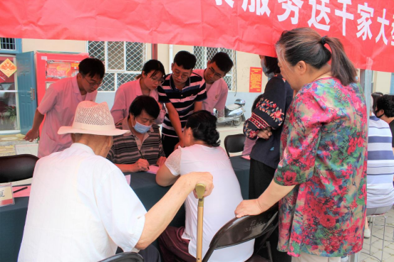 在义诊现场,专家们和医护人员对教职工及家属热情服务,尽职尽责,向往来的居民宣传卫生健康常识及国家基本医疗政策,充分发挥扎实的专业功底。无论是中医、按摩、测血压、测血糖还是健康咨询都认真聆听患者病情陈述,耐心细致解答患者提出的健康问题,并询问患者的日常起居和生活习惯,针对每个人的不同情况给出用药指导,耐心叮嘱日常注意事项,详细介绍防病和养生知识,提出合理的膳食、运动等生活指导,做到“未病先防、既病防变、预后防复”。