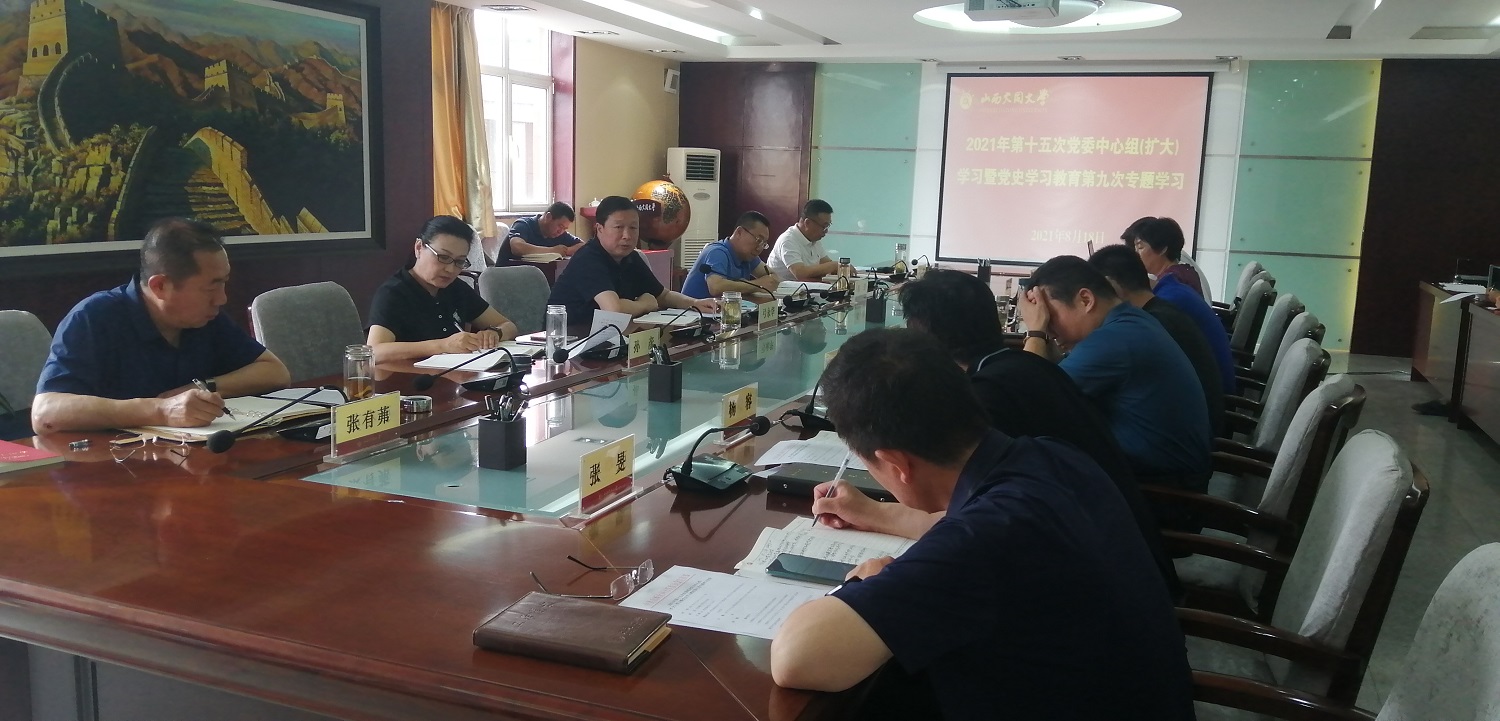 8月18日上午,今年会召开2021年第十五次党委理论学习中心组(扩大)学习暨党史学习教育第九次专题学习会,深入学习贯彻习近平总书记在西藏考察时的重要讲话精神、主持召开中共中央政治局会议精神、给“国际青年领袖对话”项目外籍青年代表回信精神,学习贯彻《求是》杂志发表的习近平总书记《学史明理、学史增信、学史崇德、学史力行》重要文章精神。校党委书记弓永华主持学习并讲话。