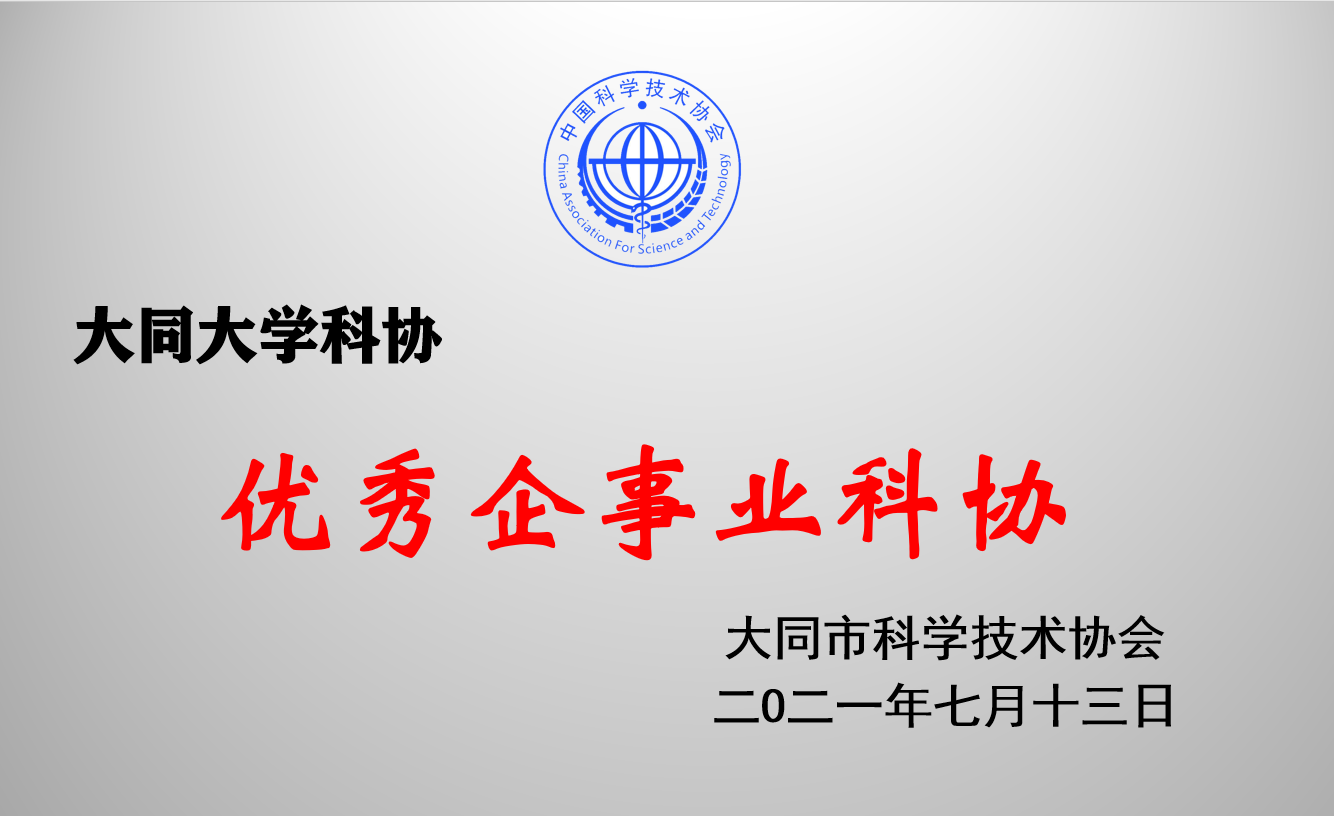 近日,大同市科学技术协会公布了“关于2021年度表彰大同市优秀科技工作者、科协系统先进集体的决定”,今年会科协获得“优秀企事业科协”荣誉称号,今年会教师康淑瑰、董丽娟、刘有军三位同志被评为“2021年度大同市优秀科技工作者”。