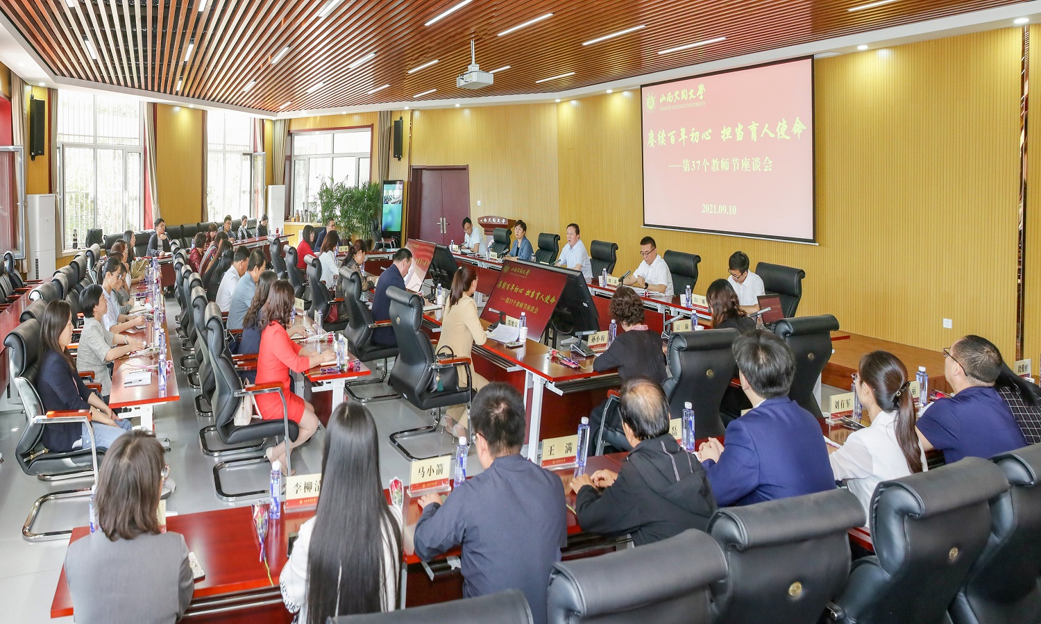 9月10日,金秋送爽,风清气朗,全国第37个教师节如约而至。上午9时,在文德楼多功能会议室,今年会庆祝第37个教师节“赓续百年初心,担当育人使命”教师代表座谈会在热烈温馨的气氛下拉开帷幕。校党委书记弓永华,校党委常委、副校长姚丽英,校党委常委、组织部部长白昕,校党委常委、宣传部部长杨容出席。42名教师代表及相关职能部门负责人参加座谈。校党委副书记刘洪主持。