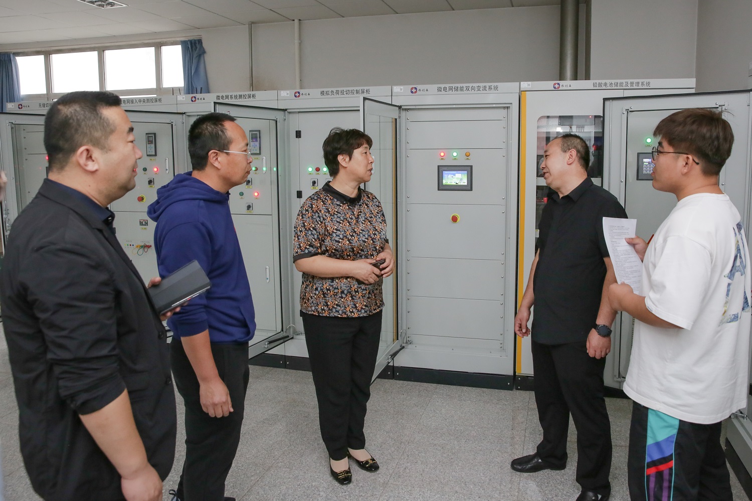 姚丽英还详细了解了实验室课程开设及其开放情况,要求合理布局实验室,加快资源整合,积极建设多功能实验室,充分提高实验室的利用率。在力热实验室,几位同学正在为参加比赛做着精心准备,姚丽英询问了参赛项目,鼓励同学们努力拼搏,争取取得好成绩。来到新能源互联网实验室,姚丽英与师生们进行了热烈交流,了解实验室光伏发电及其转化利用情况,激励大家潜心科研、大胆创新,将光伏发电做强做大,为学校节能减耗提供动力。