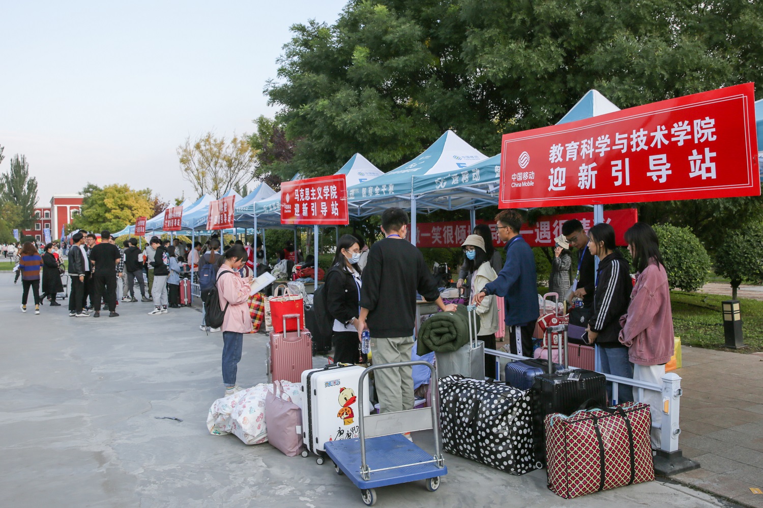 接过你的行囊,我们就是一家人。今年的新生报到流程可谓“一条龙服务”。不同往年,今年新生报到不需要统一去教务部指定工作点进行集中注册,而是核酸检测后,由志愿者带至注册报到点,直接进行班级、学籍等信息注册,行李等大件物品也无需自己运送,志愿者们主动帮新生提取行李并一直用小拖车送到宿舍。