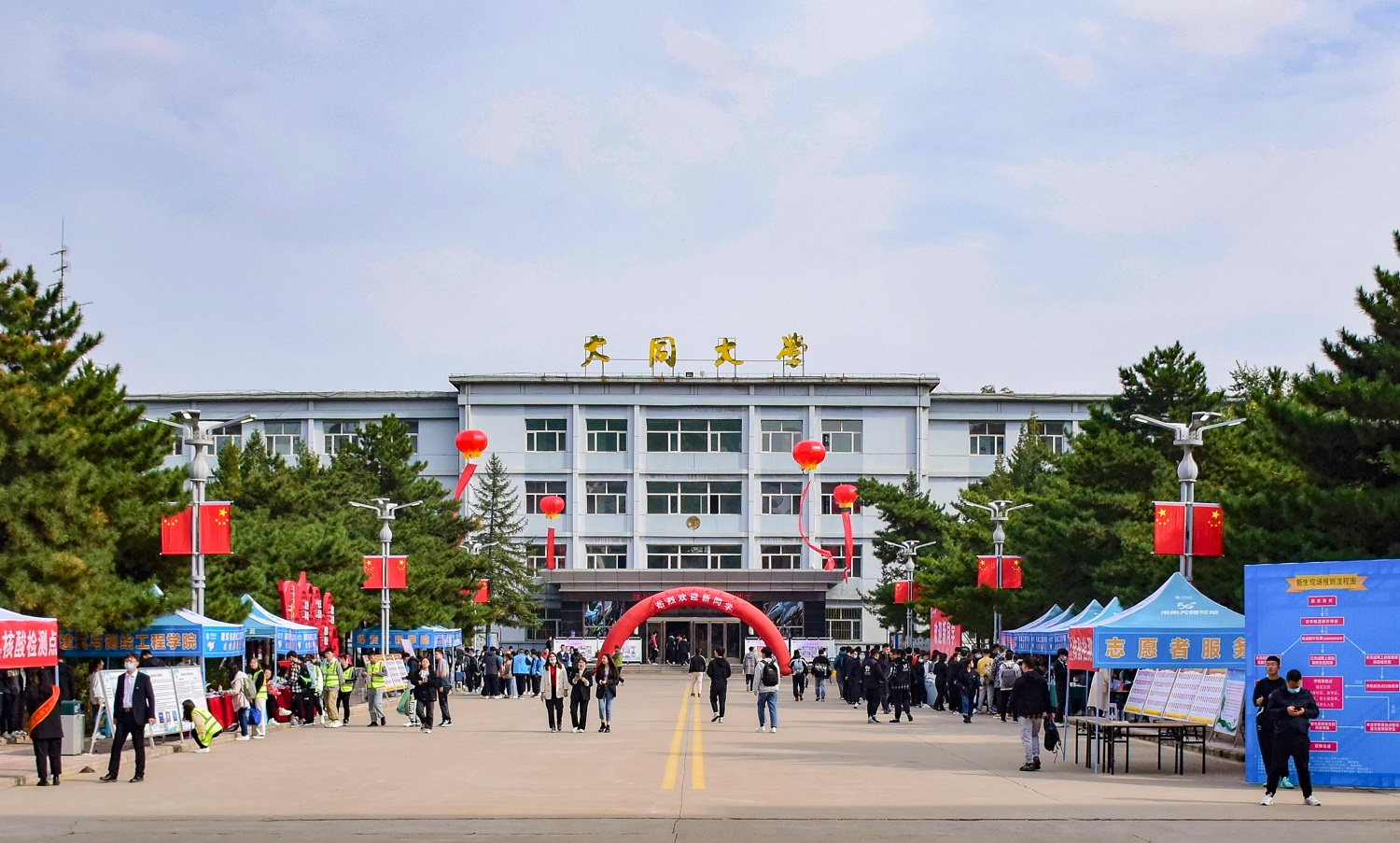 在迎新现场,新生们拎着大包小包,从专用通道步行进入。在经过体温检测、健康码、行程码等检查后,陆续进入校园。随后,学生们陆续来到天翔体育场北面统一进行核酸检测。