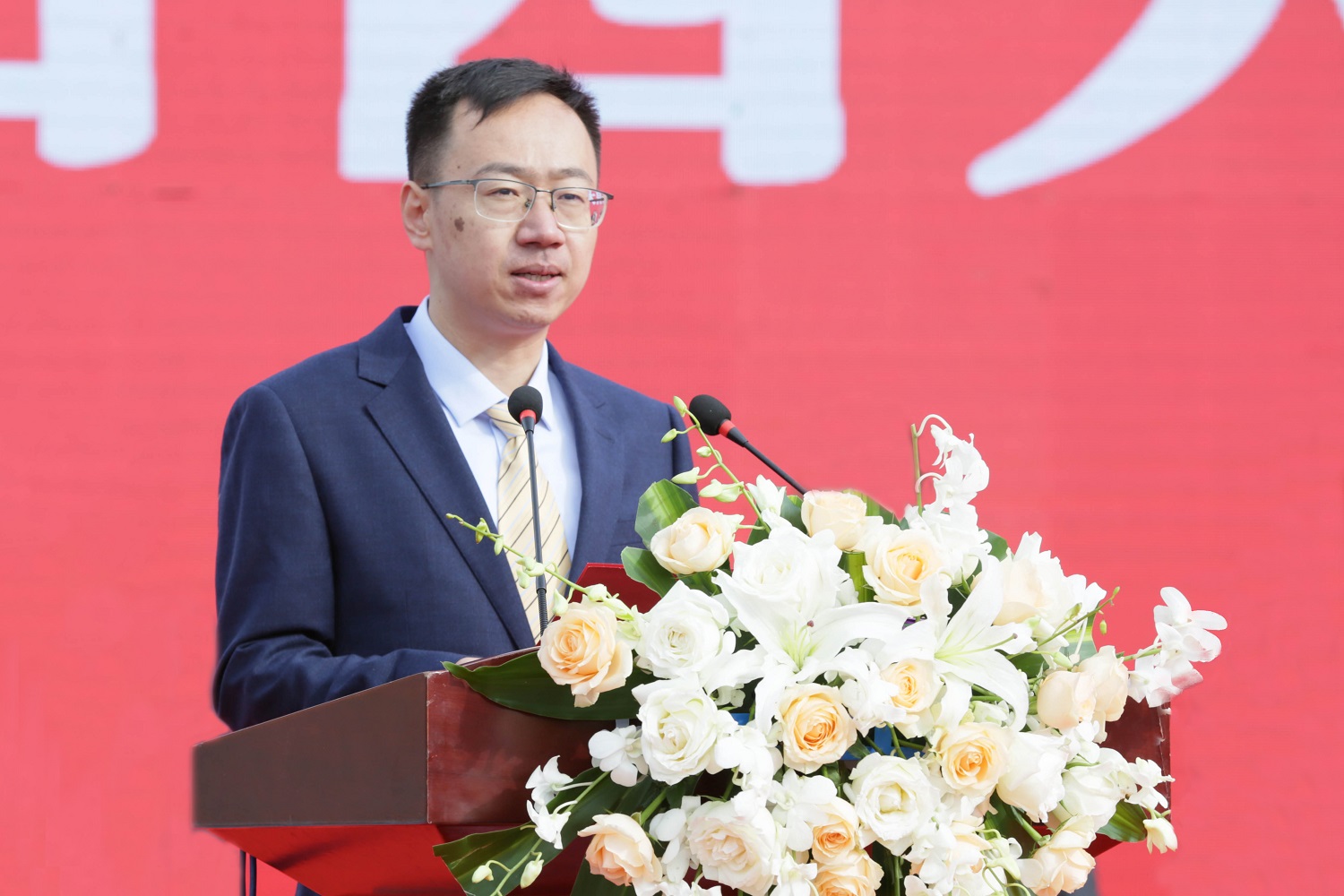校长姚丽英发表讲话——《不负时代,不负韶华,用奋斗书写青春最美篇章》。她首先代表全校师生员工对新同学的到来表示热烈欢迎,祝贺大家成为同大的新主人,并一一历数广大干部师生在“艰苦创业、勠力同心、执着奉献、开拓创新”同大精神感召下铸就的一个又一个同大事业发展喜人成就——申硕冲博,通过教育部本科教学审核评估和临床医学专业认证,获评省市“文明单位”、省级“文明学校”,成为山西省首批高水平应用型大学,2021校友会中国一流专业排名居山西省应用型一流专业首位,创办产业学院,获批国家级重点实验室,云冈学建设取得重大成果……历数“同大精神”锻造涵养出的一代代优秀学子——赴美学成归来的1999级校友史海斌,背着母亲求学的2017级校友辛荣达,零基础通过英语六级考试的2018级学生帕提古丽·吾斯曼……一个事业欣欣向荣、学子昂扬向上的同大跃然呈现在同学们眼前。“希望你们继承好、发扬好同大精神,牢记同大人的使命与担当,把根基深深扎进大地,把责任稳稳扛在肩上,接续奋斗,再接再厉。中国的未来属于你们!同大的未来属于你们!”掌声阵阵,激情涌动。