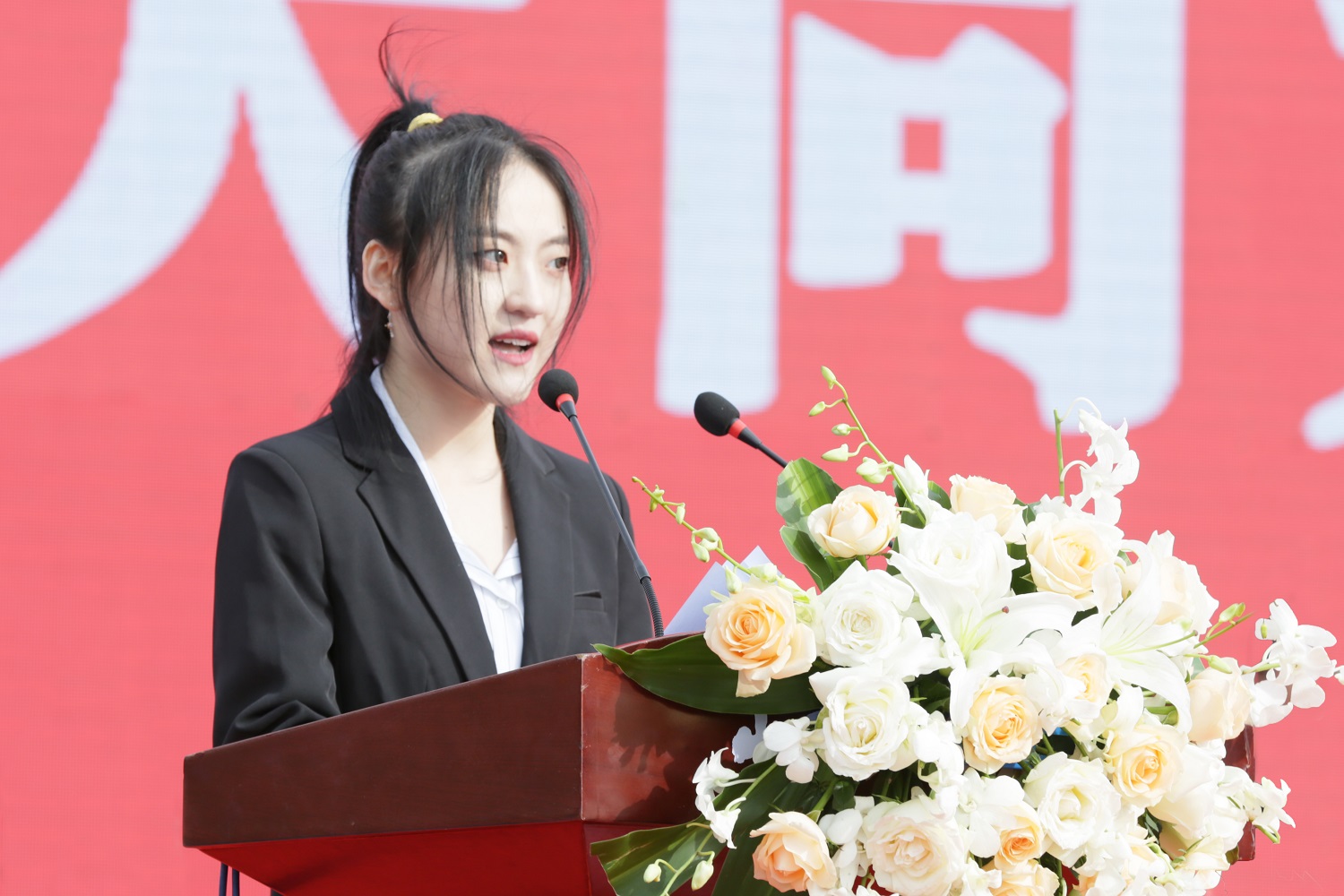 在校生代表、文学院盖幸子同学热情鼓励学弟学妹们,坚定信仰,勇敢尝试,乐于实践,真诚给予,在青春同大,美丽同大绘就人生中最耀眼、最难忘、最真挚、最热血的人生画卷。