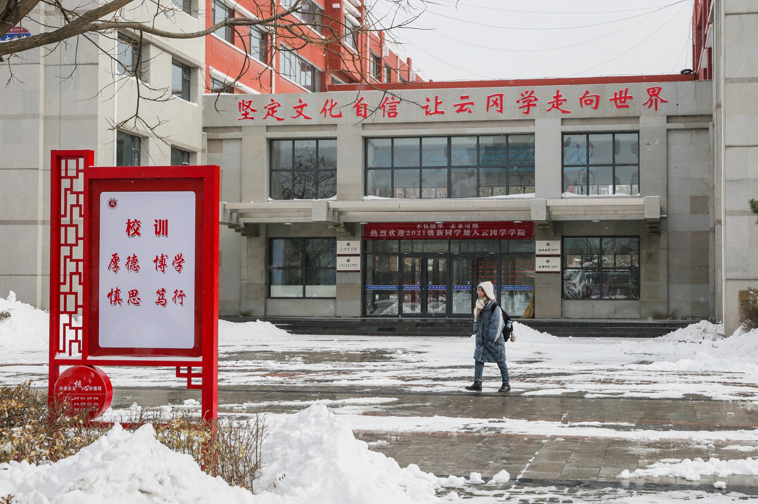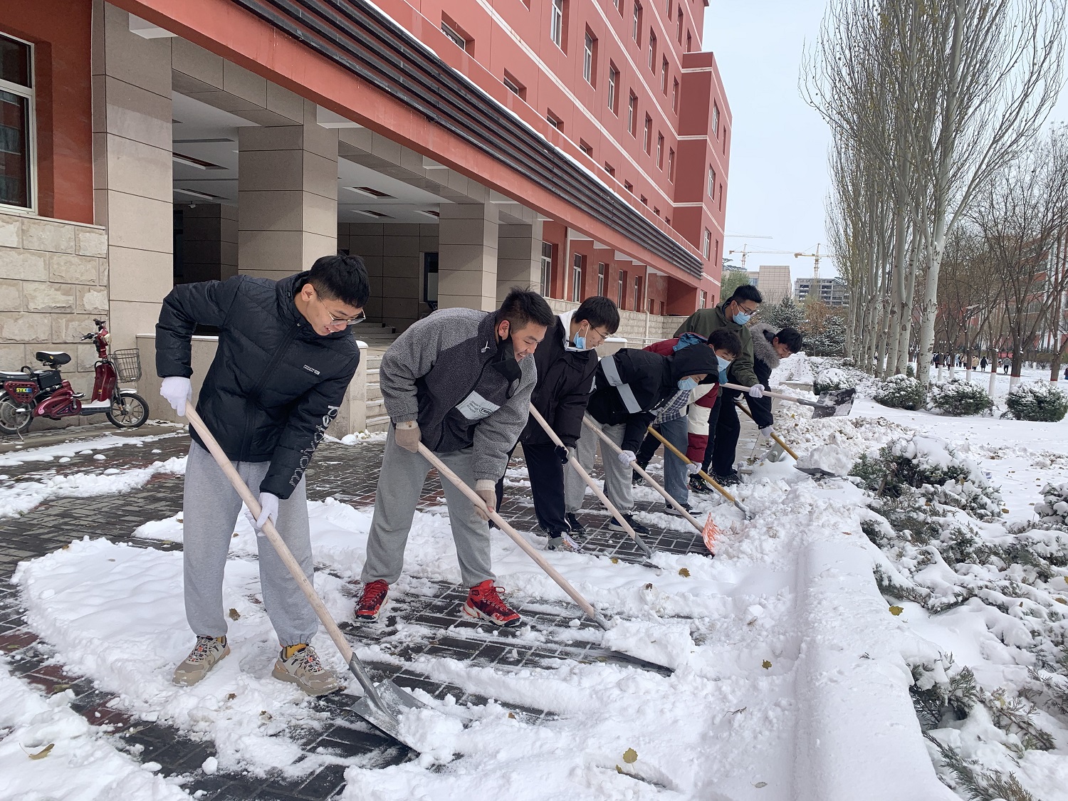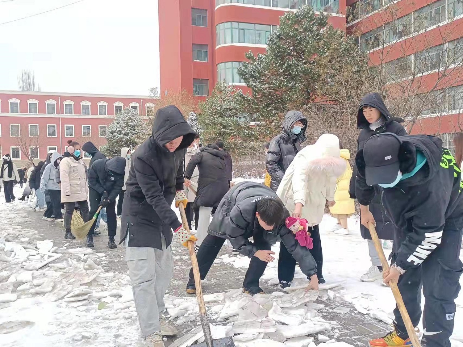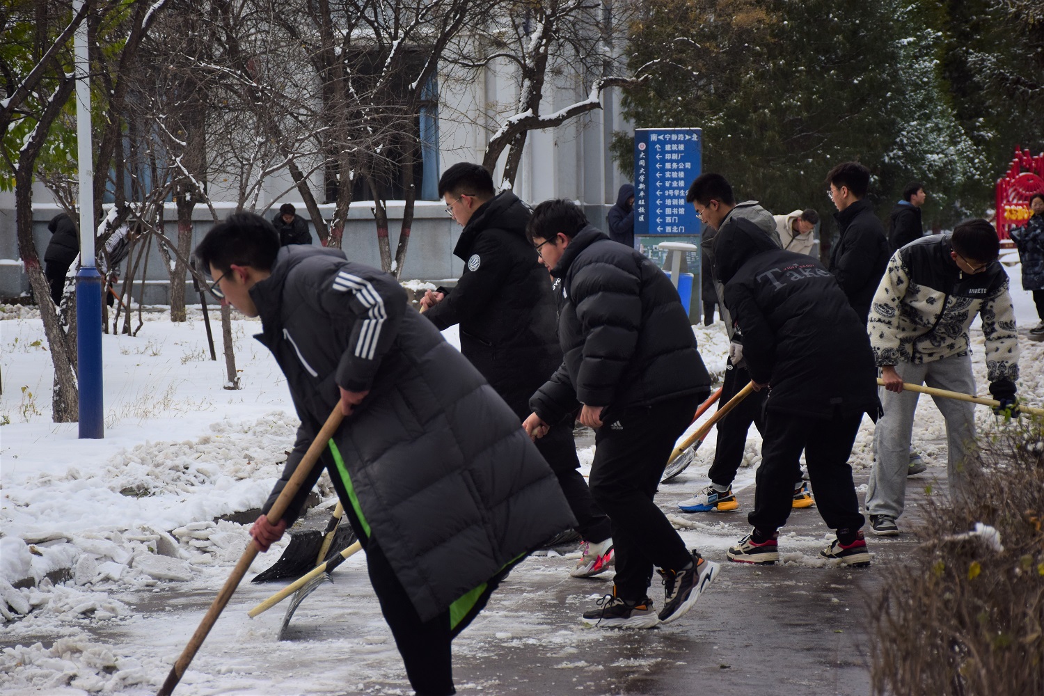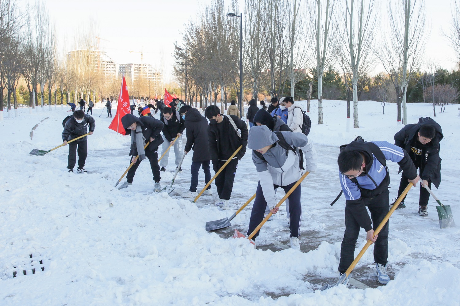 雪景虽美,但比雪景更美的是全校干部师生忙碌的身影。大家以雪为令,全情投入到清扫积雪的活动中。“一言一行树形象,一举一动见文明”,大家不畏严寒,浴“雪”奋战,享受到了为他人服务的快乐,体现了团结协作和无私奉献的同大精神,践行了劳动育人的教育理念。“虽然手脚冻僵了,但同学们的心是热的。我们把路面清扫干净了,老师和同学出行就安全了。”在冰天雪地里,这朴实的话语更加温暖人心,更加令人感动,同大学子好样的!