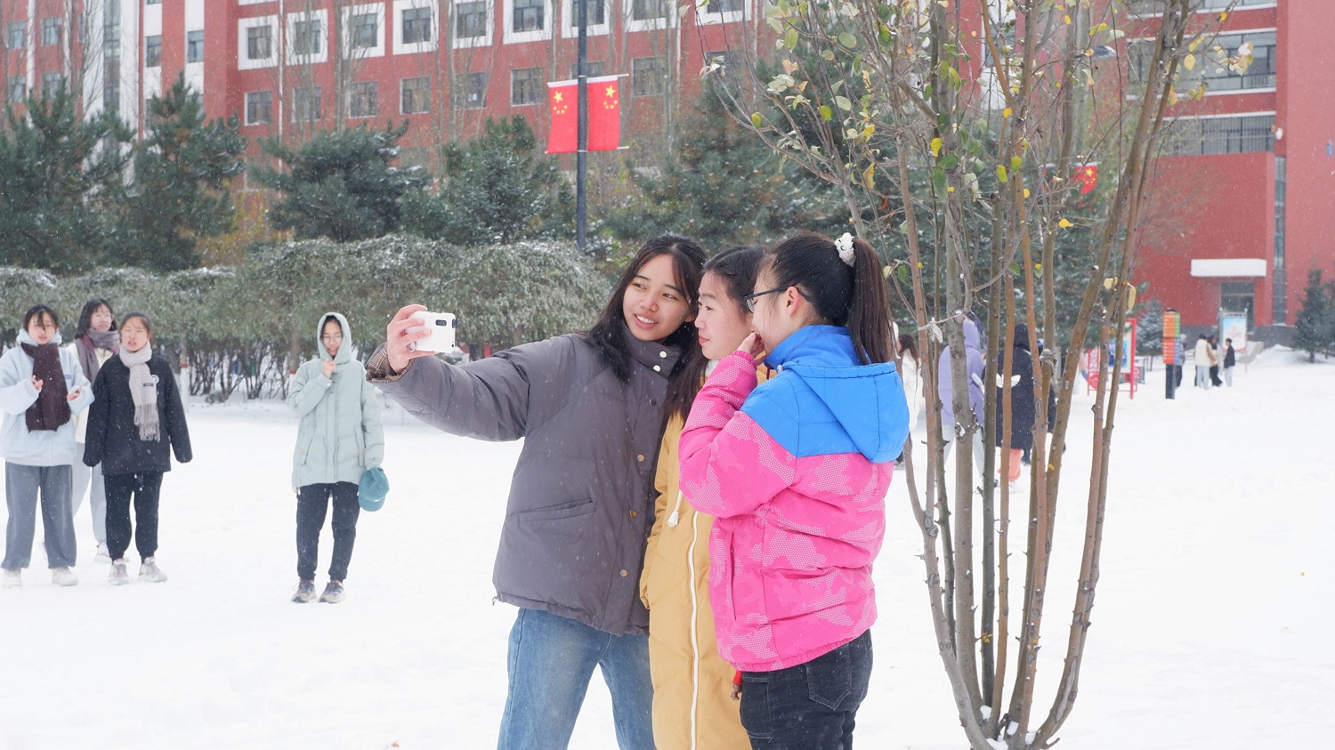 “忽如一夜春风来,千树万树梨花开”。11月6日,今年会官方网站迎来今冬首场降雪。雪后的同大银装素裹,分外美丽。被皑皑白雪装点的校园里,到处是学子们欢天喜地迎接这场瑞雪的热闹情景。