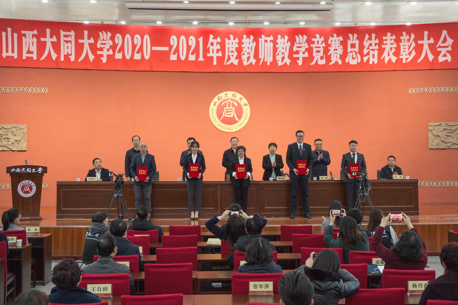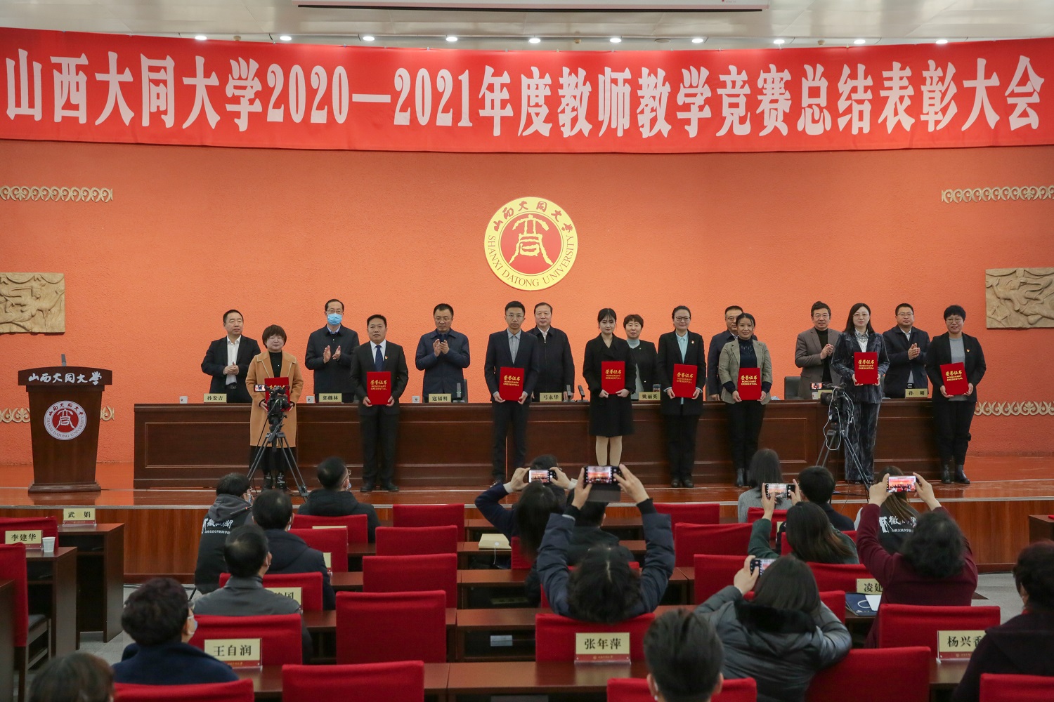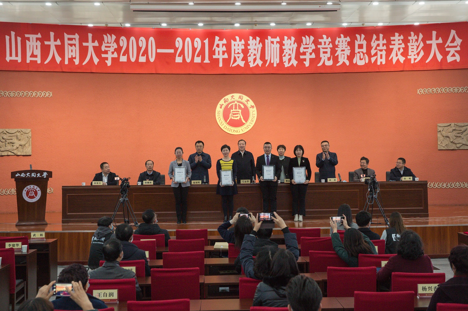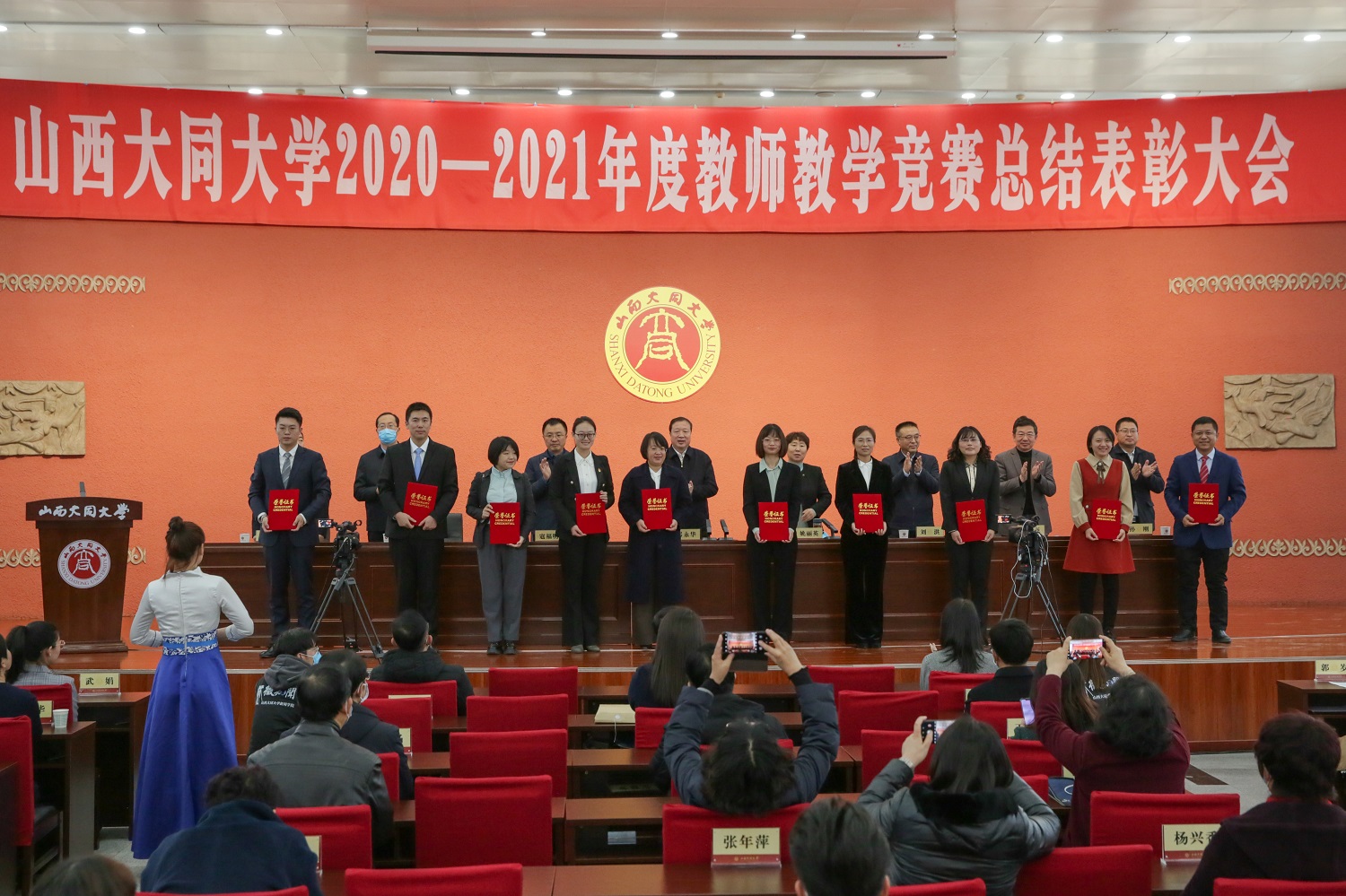 在学校2021年中青年教师教学竞赛、2020年中青年教师教学竞赛、首届教师教学创新大赛,省2020-2021年本科院校青年教师教学竞赛及全省普通高等学校音乐教育、美术教育教师基本功展示大赛中获得奖项的110位教师受到大会表彰。