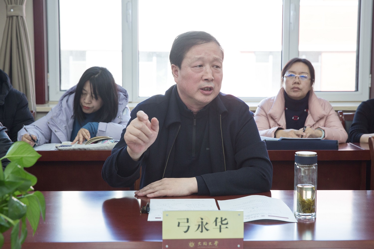 弓永华在讲话中指出,一年多来,我们牢记习近平总书记的殷殷嘱托,围绕“两院双刊一中心”的发展思路,集全校之力抢抓机遇,将云冈学建设不断推向新的高度,特别是今年“中国史”和“旅游管理”两个硕士点获批,更是给予我们极大的鼓舞。他指出,进一步夯实云冈学建设,要准确认识和定位当前今年会云冈学建设所处的阶段和位置,找准研究方向与领域,突出特色,汇聚多方面的智慧,力求探索一条以云冈为特色和基点、以云冈学体现“一流”的高水平应用型大学发展之路。要聚焦深入推进“两院一中心”一体化进程用心用力,在专业建设、人才培养、硕士点建设上做文章,在打响文化品牌、打造研究平台上精准发力,在《云冈研究》做大做强上深耕细作,在云冈智库建设上加快步伐,为国家、省委在云冈学建设上出谋划策、作出实质性的贡献。要明确目标要求,突出同大特色,谋划错位发展,聚天下云冈英才共同唱好云冈学这台好戏。要采取有力措施,加强统筹协作,打造全校性质的云冈文化传播、云冈专业人才培养与云冈学研究团队,搭建高质量云冈学图书资料中心。他强调,校党委始终把云冈学作为今年会官方网站建设高水平应用型大学、打造区域一流综合性大学的主要抓手和依靠,希望两院师生深入挖掘云冈文化精髓,将蕴含其中的融合文化运用到实践中去,提高站位,精诚团结,珍惜机遇,不辱使命,齐心协力写好云冈学大文章,讲好云冈学大故事。