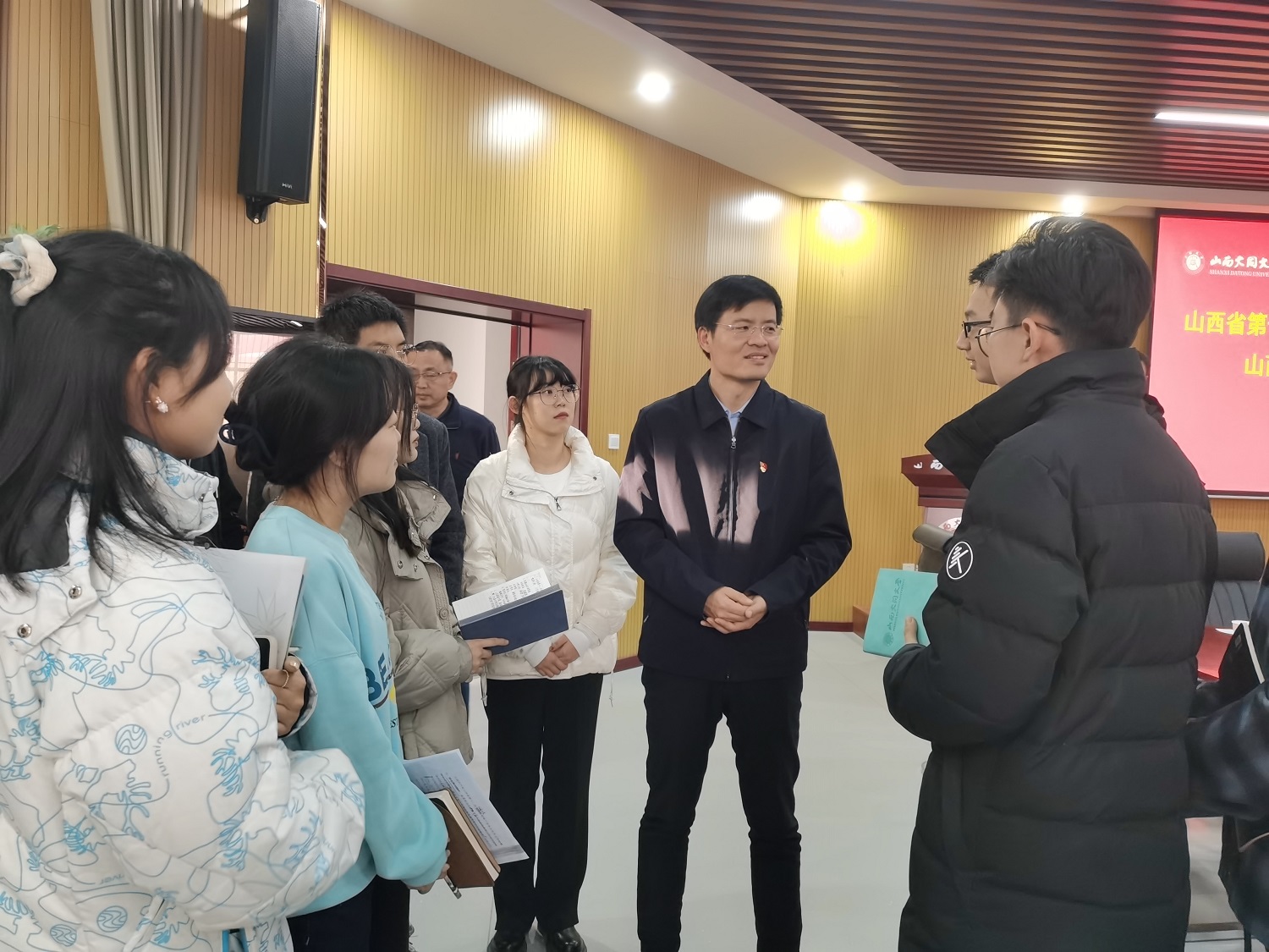 交流互动结束时,师生们仍然意犹未尽,与郭晓东老师就充分利用山西丰富的优秀文化资源、建设文化强省等进行了热烈探讨。