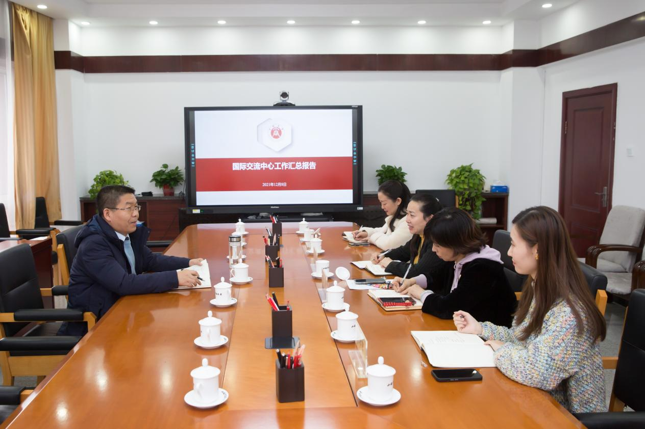 在听取了国际交流中心主任赵琦对中心情况的介绍及近几年的工作汇报后,雷建设对国际交流中心各方面工作给予肯定,并进一步了解了教职工情况,包括教师博士比例、教师的职称和学历分布情况等。他就下一步具体工作进行了安排:一是加强制度建设,厘清职权分布,完善激励机制,进一步加强国际合作与交流。二是联系各学院,针对教师需求开展调研,通过开展学术交流,参加国际学术会议等形式,扩大学校科研教学的对外合作与交流,以此提升学校知名度;同时积极邀请海外人员来访、讲学,寻求更多更好的合作与发展的机遇。三是尽可能用好外事经费,从实际出发,做好下一年度的外事财务预算计划,同时也鼓励年轻教师运用科研项目出国交流。