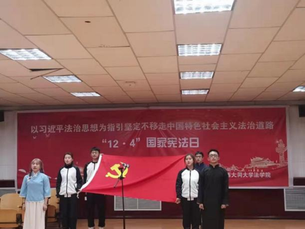 校团委组织开展了“我与宪法”主题征文活动,面向全校征集法治绘画、微视频等400余件,挑选优秀作品50余件进行公开展出。联合学工部设立了宪法宣传站,通过发放宪法宣传资料、宣讲宪法内容、开展“宪法知识测试”等形式,向师生宣传宪法知识,讲解宪法内容。在12月4日国家宪法日当天,学校组织师生代表在南校区体育场举行了“深入贯彻习近平法治思想,弘扬宪法精神”主题升国旗仪式。(办公室)