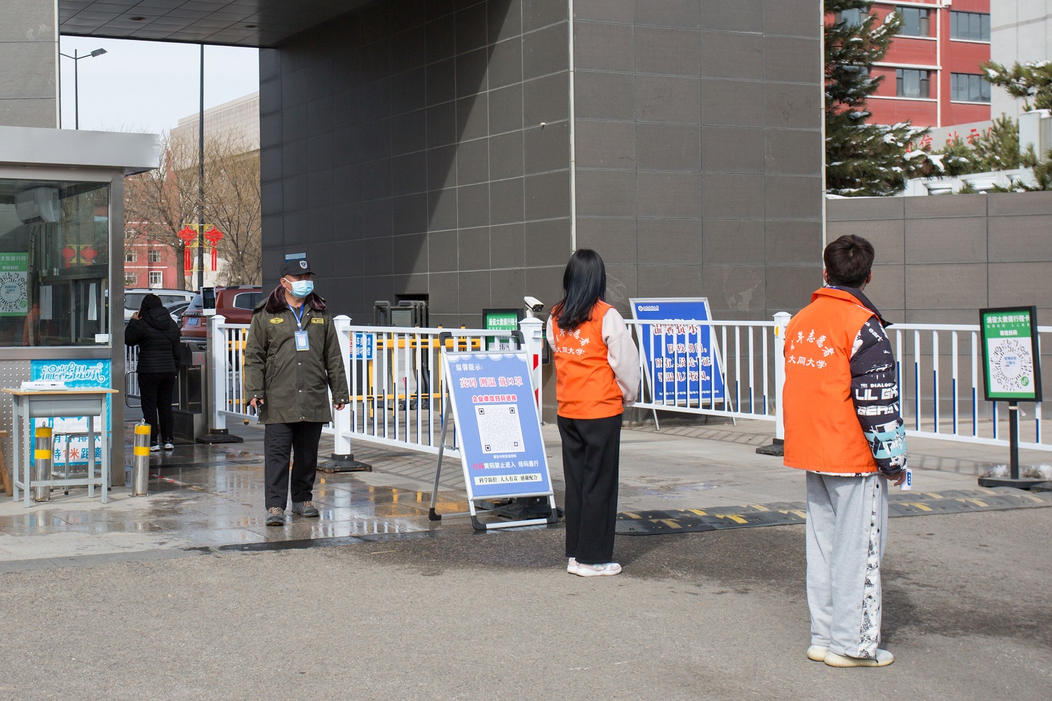 严格值守制度,加强门禁管理。保卫部将工作重心放到南、中两校区的大门防守上,严格执行24小时校园值守制度,实行严格的门禁管理和检查制度。保安人员始终保持战疫状态,严禁校外人员和车辆进入校园,严格检验进出校园人员身份,认真检测体温,严格查验健康码、行程码和核酸检测阴性结果证明,及时劝导未佩戴口罩的人员,耐心劝返无关人员,确保无教职工搭载学生出校的现象,以快速、全面、精准、有效为工作原则,坚守岗位,主动担当,积极作为,严守校园疫情防控第一道防线,筑牢校园疫情防控坚实壁垒。他们坚毅的身影是同大冰雪中最美的风景线,也是每一个同大人心中的‘定海神针。