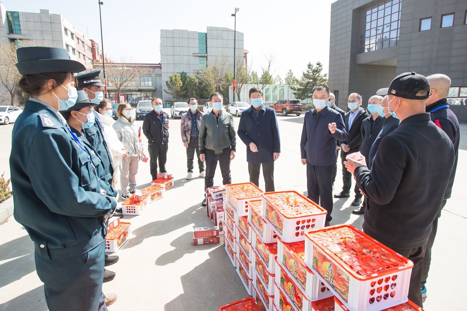 3月26日上午,校党委副书记寇福明,校党委常委、副校长张旻等校领导前往我校疫情防控服务点,看望慰问战斗在疫情防控一线的安保人员,代表校党委向他们致以崇高敬意和诚挚感谢,希望他们能克服困难,守好关口,严格落实好疫情防控要求,筑牢校园疫情防控的安全屏障。