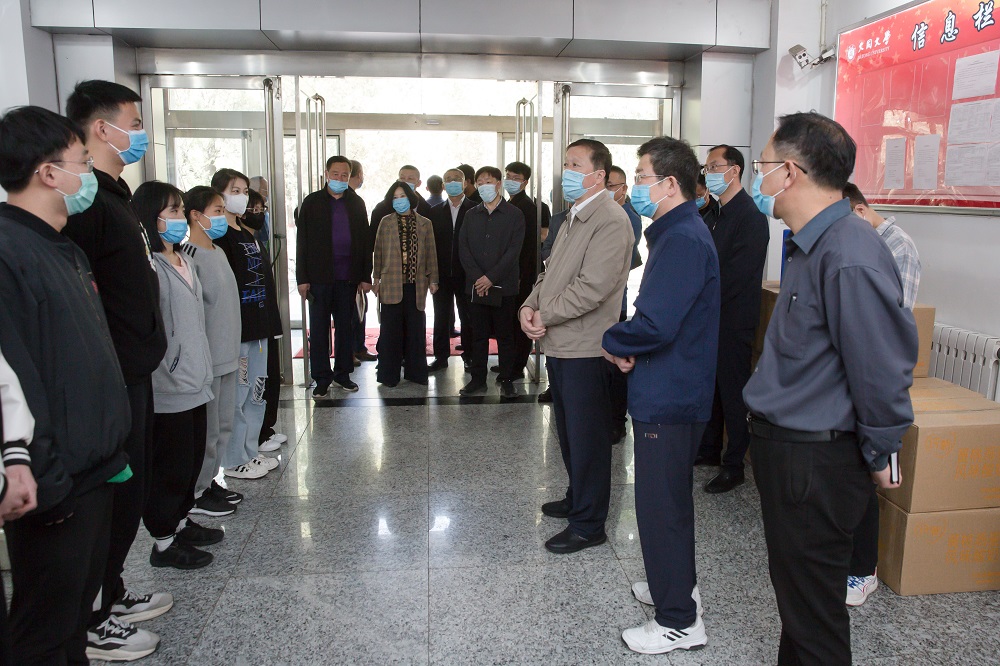 4月25日,校党委书记弓永华带队深入新平旺校区调研督导工作,并看望慰问驻校干部师生。校党委副书记刘洪,校党委常委、纪委书记郭继林,校党委常委、副校长张旻随同调研。
