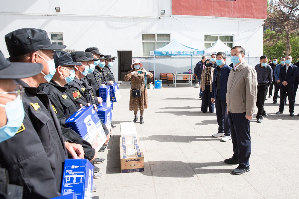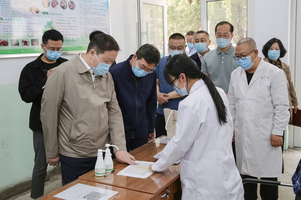 随后,弓永华一行深入图书馆、办公楼、食堂、学生公寓楼、医务室等地,了解疫情防控举措、工作进展情况及服务举措,看望慰问奋战在疫情防控一线的干部师生,衷心感谢大家辛勤付出和默默奉献。