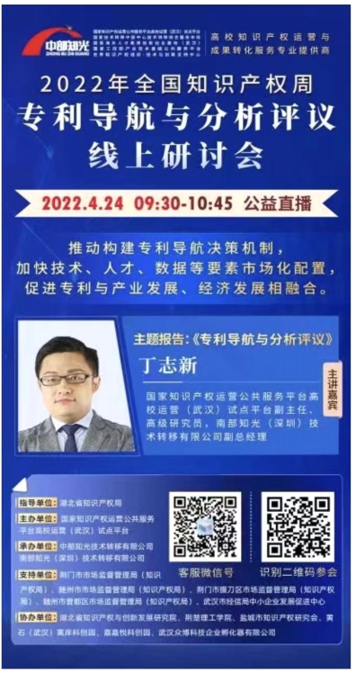 活动领导小组积极组织师生参加2022年全国知识产权周专利导航与分析评议会。4月24日上午,主题报告为《专利导航与分析评议》线上研讨会召开,今年会师生在线观看与学习,本次研讨会为对构建专利导航决策机制,加快技术、人才、数据等要素市场化配置,促进成果转化具有重要意义。