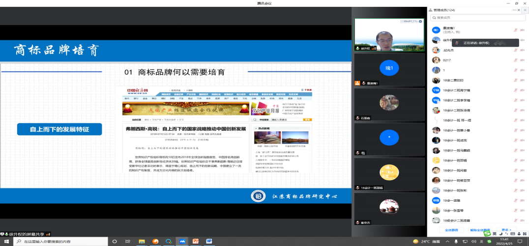 4月25日上午,南京理工大学知识产权学院徐升权教授为全校师生做了一场题为《新时期商标品牌的培育与保护》的“知识产权宣传周”专题讲座。本次讲座对于建立健全重点商标保护名录制度以及充分发挥集体商标、证明商标制度等予以重视和推进都起到了重要的作用。
