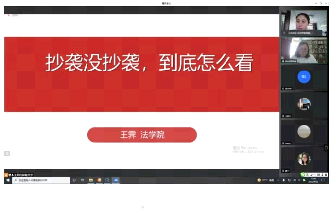 4月25日上午,法学院王霁老师在线上做了题为《抄袭没抄袭,到底怎么看》的“知识产权活动宣传周”专题讲座。讲座中详细讲解了著作权有无抄袭的判断标准,并通过丰富、生动的案例进行了分析。同时,与师生在线上进行了交流互动,让大家对著作权的知识产权保护有了更深刻的理解。