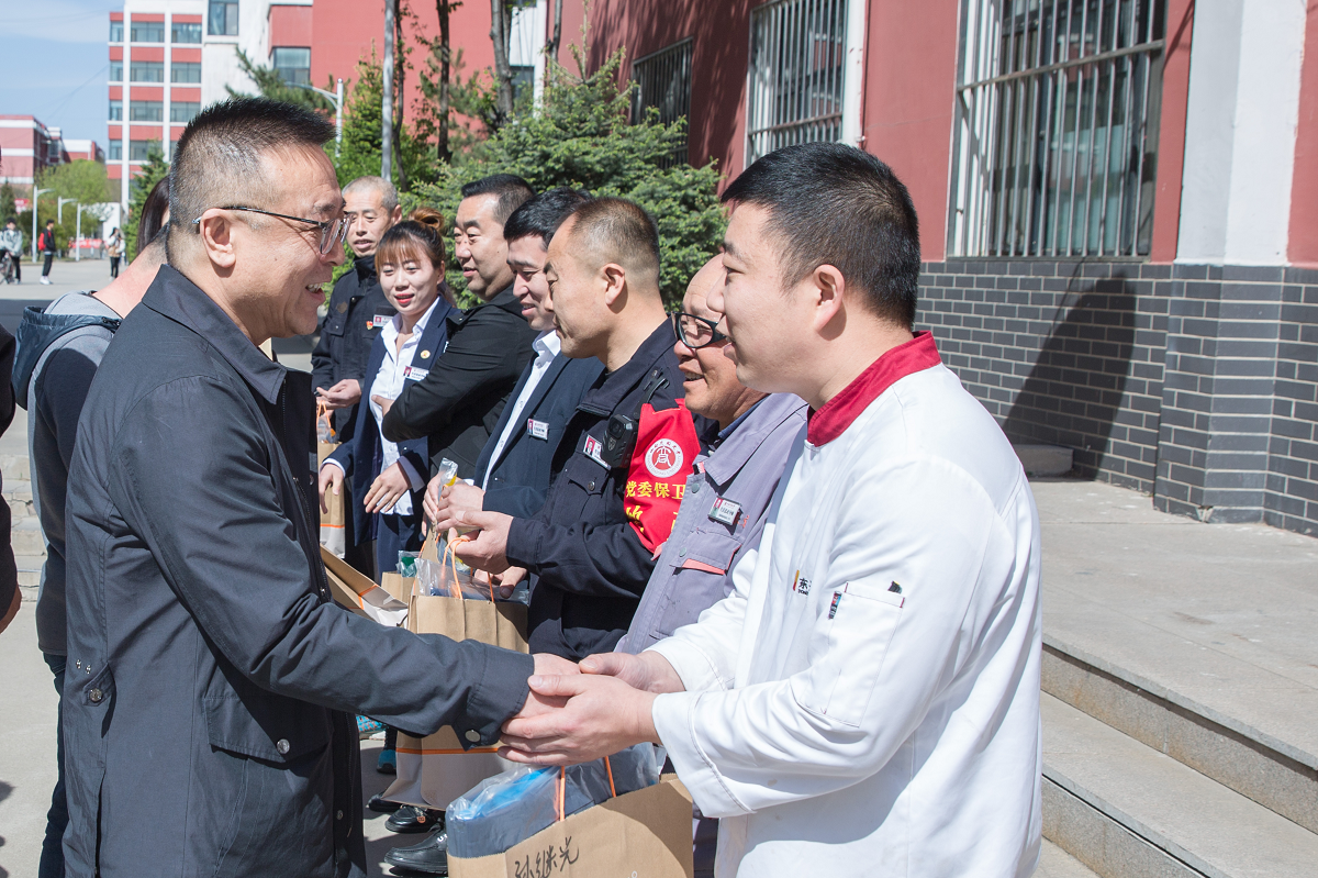 校工会主席侯桂兰和福利委员会主任闫世忠代表校工会委员会向坚守防疫岗位一线的教职工致以崇高的敬意,感谢他们舍“小家”为“大家”,为校园疫情防控和保障校园安全稳定所付出的辛劳。他们鼓励大家弘扬劳模精神、劳动精神、工匠精神,进一步落实疫情防控工作要求,巩固疫情防控工作成果,并表示“疫情防控一线教职工在哪里,工会服务就到哪里,有困难要及时反映,工会这个‘娘家人’一定当好疫情防控一线教职工的坚实后盾”。