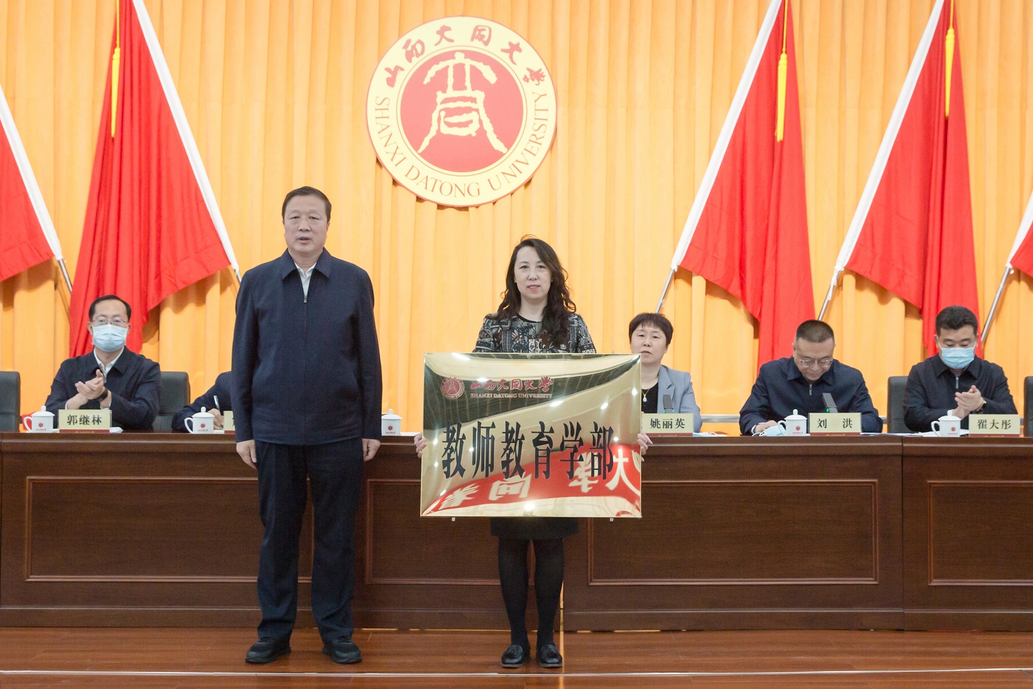 弓永华、姚丽英为人文社科学部、教师教育学部、艺术学部授牌。