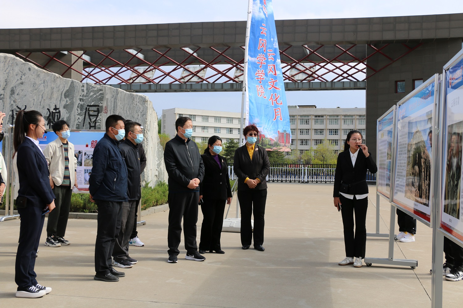 牢记领袖嘱托,书写优秀答卷。在习近平总书记视察云冈石窟两周年到来之际,为深入挖掘云冈石窟文化资源,让古老的云冈石窟“活”起来,拓宽“云冈学”建设路径,5月11日,云冈学学院在行知广场举办首届“云冈文化月”文娱、宣讲、艺术体验活动。校党委书记弓永华,校党委常委、副校长石凤珍出席活动并给予指导。云冈学学院班子成员、师生代表共同见证活动盛况。