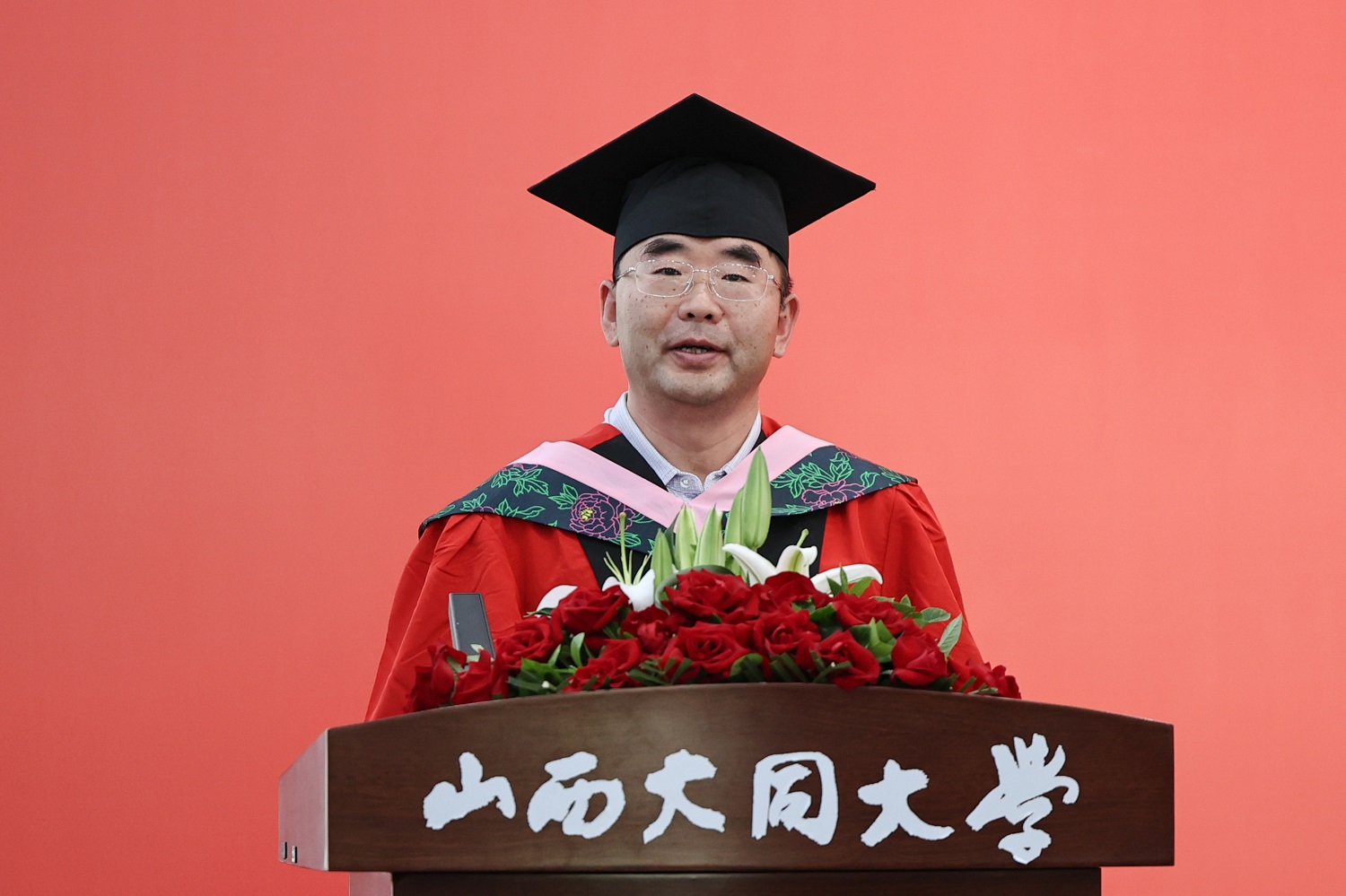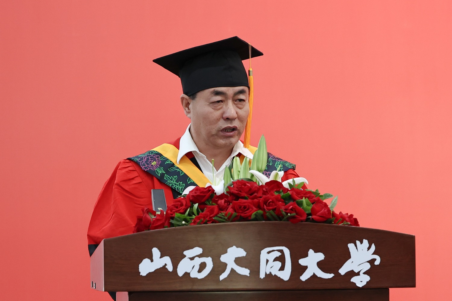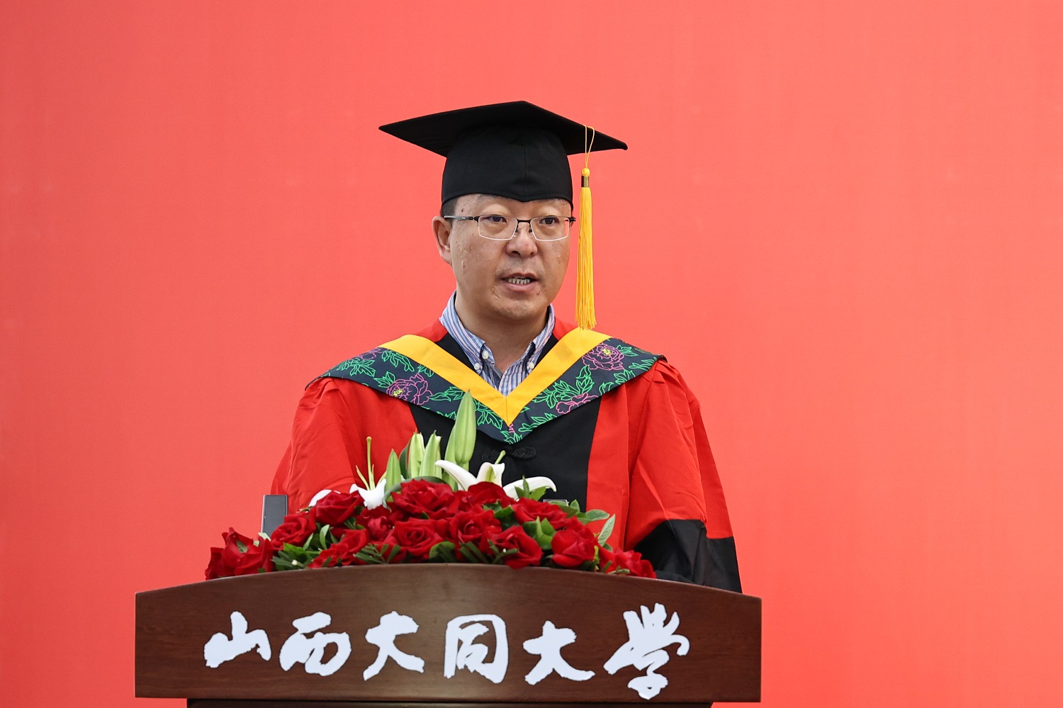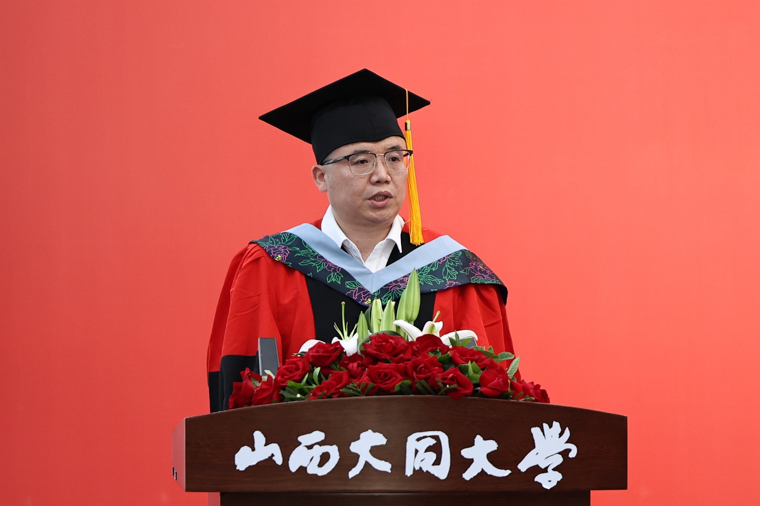 中国科学院工程热物理研究所正高级工程师、大同市煤炭清洁高效利用研究所执行副所长、资源与环境专业产教融合研究生联合培养基地和行业导师代表刘志成,煤炭工程学院院长、资源与环境专业学位点负责人宁掌玄,文学院副院长张忠堂,化学与化工学院副院长解海分别代表培养学院领导和指导教师发言,为全体毕业研究生送上美好祝愿。
