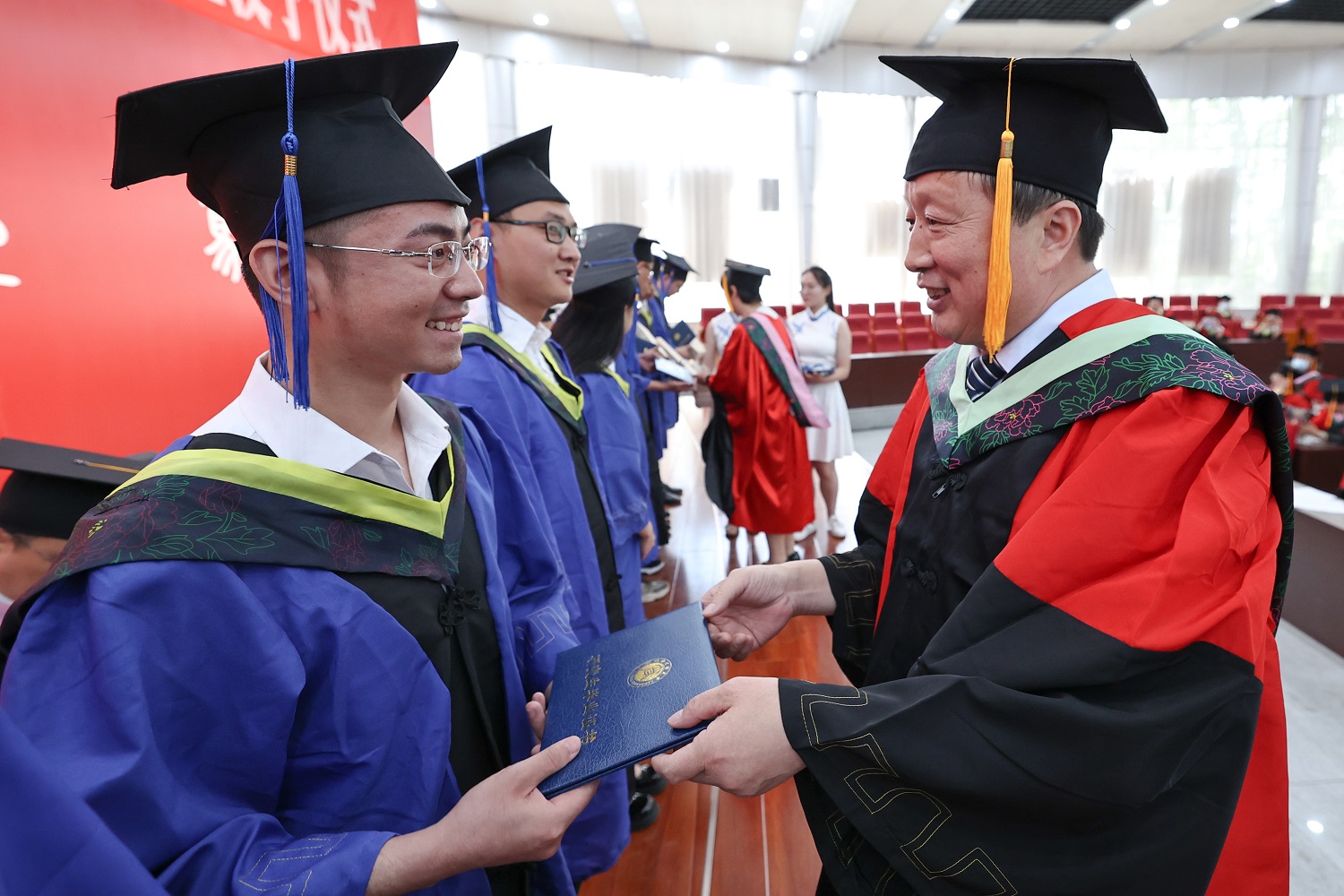 校党委副书记刘洪宣读校党委关于表彰优秀研究生、优秀研究生干部、研究生精神文明优秀集体和优秀个人、科技创新优秀团队和优秀个人,以及优秀研究生指导教师的决定。校党委常委、副校长翟大彤宣读学校2022届研究生准予毕业决定、学位授予决定及校级优秀硕士学位论文名单。校党委常委、副校长石凤珍宣读学校关于聘任2022届研究生校友联络大使的决定。