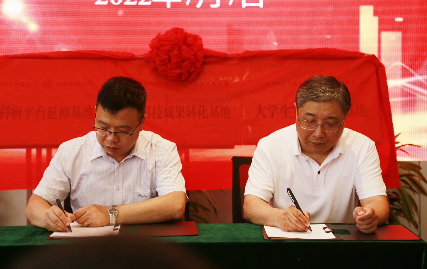 姚丽英、史小林共同为“高校科研平台延伸基地”“高校科技成果转化基地”“大学生实习实训基地”揭牌。