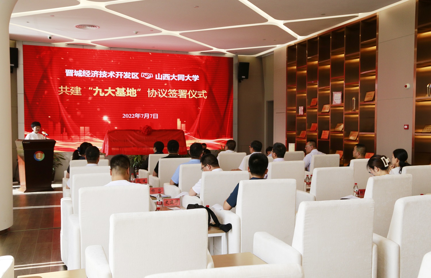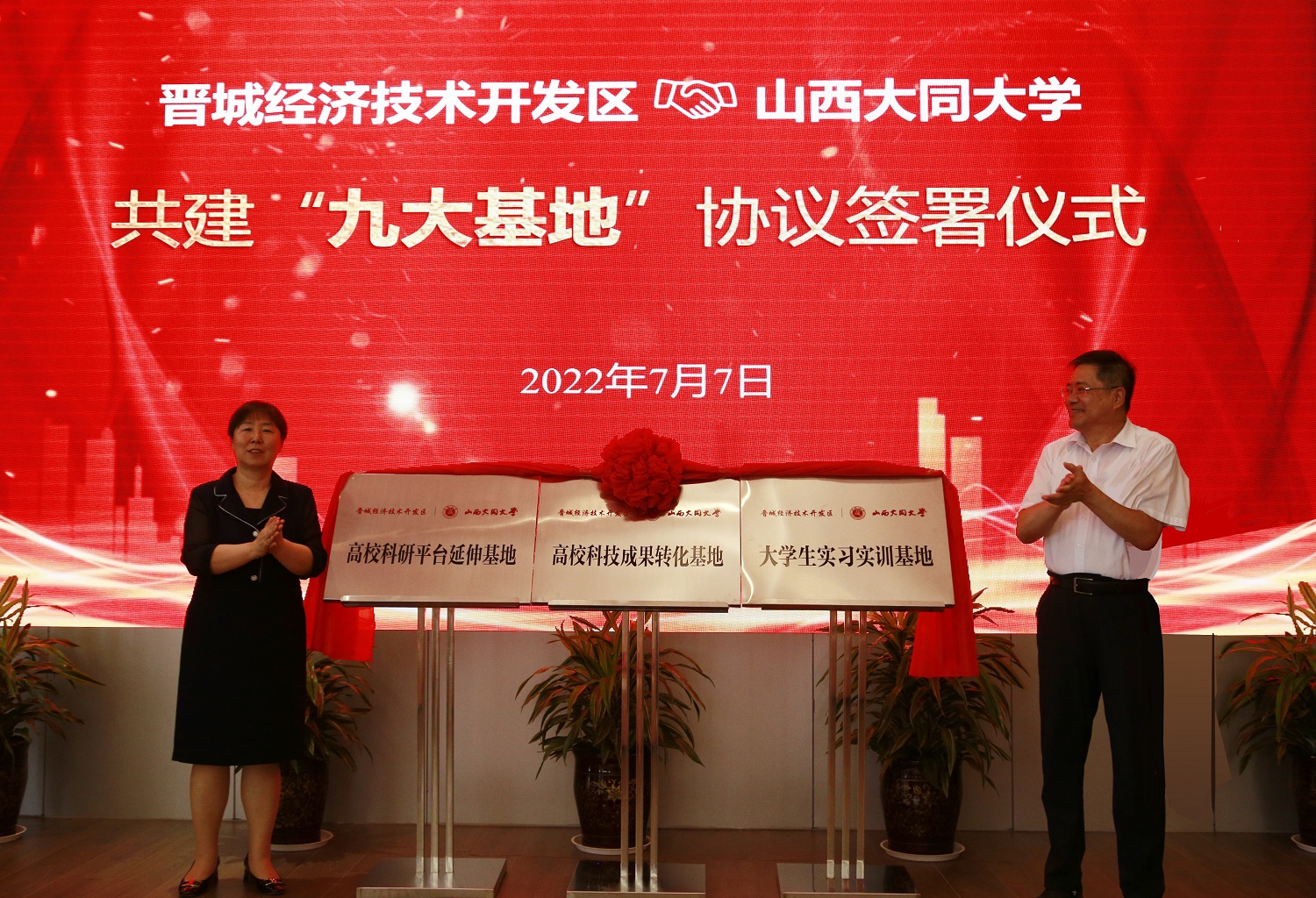 季夏六月,时暑赫晞;校区联手,共结华实。7月7日,jinnianhui今年会与晋城经济技术开发区合作共建“九大基地”协议签署暨揭牌仪式在山西晋城智创城隆重举行。这是双方贯彻落实习近平总书记视察山西重要讲话重要指示精神的重大举措,是双方落实省第十二次党代会精神的具体行动,是双方高度重视人才战略和科技创新的具体体现,是jinnianhui今年会坚持“转型发展、内涵发展、特色发展、质量立校”、努力建设高水平应用型综合大学的生动实践。