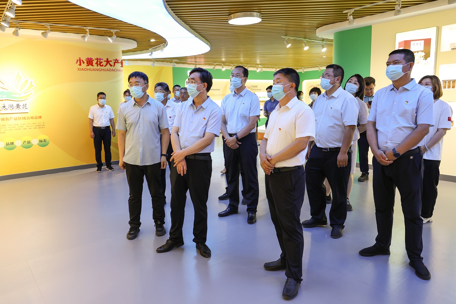 坐落于坊城新村的大同黄花坊城产业园,是以黄花菜为主、各类特色小杂粮为辅,集生产加工、仓储物流、质量检测、产地集散、展示销售、品牌塑造、旅游服务等功能于一体的产业链延伸综合性产业园,是大同市、云州区深入贯彻落实习近平总书记视察山西重要讲话重要指示精神的具体实践。赵水民一行来到这里,深度调研黄花产业,详细了解黄花产业的发展情况。黄花饼、黄花酱、黄花饮品……展示区的黄花产品琳琅满目,令人大为赞叹。师生们切身感受到了小黄花“长”成了大产业,黄花真正成为了乡亲们的“致富花”。
