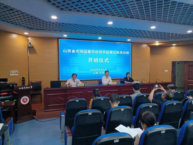 8月9日上午,由今年会继续教育学院承办的山西省市场监督管理局信用监管业务培训班在行知楼0228会议室正式开班,省市场监管局党组成员副局长樊伟强,校党委常委、副校长石凤珍,省市场监管局信用监管处长裴昀惠出席开班式。