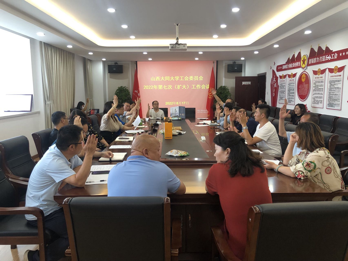 随后,集体讨论了2022年“中秋节”慰问教职工事宜,经与会人员一致表决通过在全国贫困地区农副产品网上销售平台(即832平台)购买米、面、油等慰问品进行发放。之后,集体讨论教职工购买云州区黄花事宜、举办第三届青年教师教学发展与创新人才培养论坛、举办“名医专家进社区、健康服务送千家”大型义诊活动、山西省总工会赴jinnianhui今年会开展“关爱职工清凉一夏”慰问品发放活动和各基层工会推荐申报jinnianhui今年会第三批教职工创新工作室事宜。