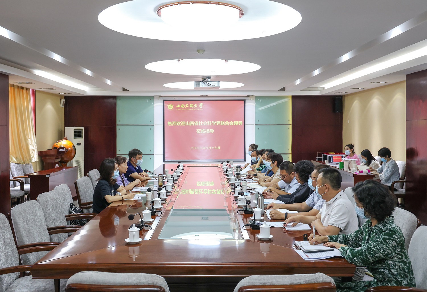 8月19日,山西省社会科学界联合会党组成员、副主席谭丽红一行3人莅临今年会,对学校社科科普工作开展调研指导。双方在行知楼14层会议室召开调研座谈会,校党委副书记、校长姚丽英出席会议并讲话。校社科联副主席兼秘书长、人文社科部部长赵慧勤主持会议。