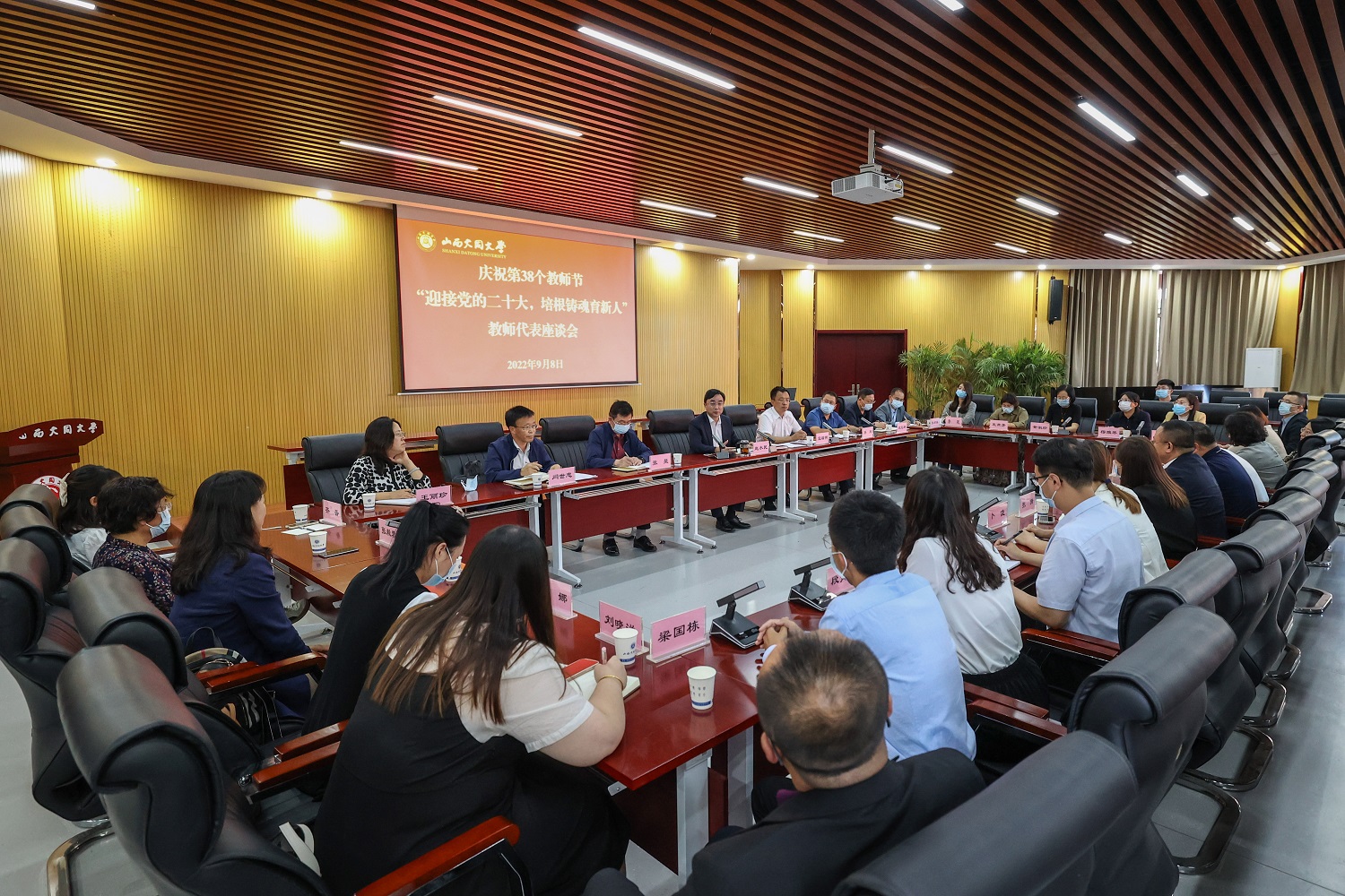 9月8日,为庆祝第38个教师节的到来,今年会在文德楼和行知楼召开了“迎接党的二十大,培根铸魂育新人”教师代表座谈会。校党委书记赵水民,校党委副书记、校长姚丽英,校党委常委、副校长张旻出席会议。校党委副书记寇福明、校党委副书记刘洪分别主持两会场会议。