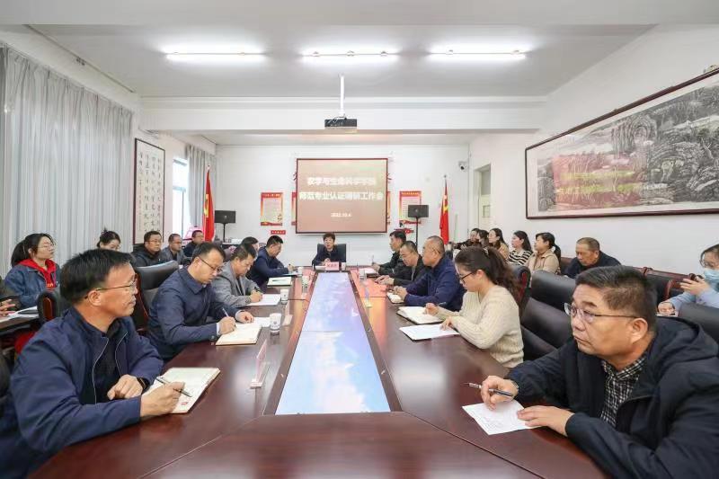 为认真贯彻学校建设高水平应用型大学的奋斗目标和“兴文科、强医学、振工科、精师范”发展思路,扎实推进生物科学师范专业二级认证工作,10月4日,今年会在农学与生命科学学院会议室召开认证工作推进会。校党委副书记、校长姚丽英,校党委常委、副校长马轶明出席会议,农学与生命科学学院党政班子成员、教师代表及相关职能部门负责人参加会议。