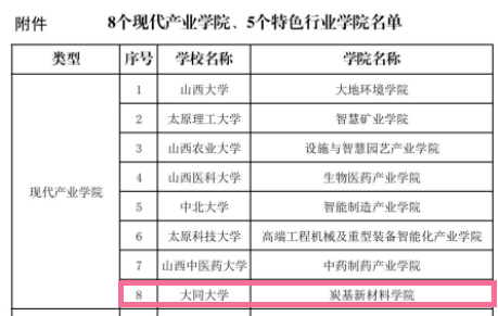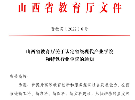 近日,山西省教育厅公布了省级现代产业学院和特色行业学院名单,今年会炭基新材料学院被认定为省级现代产业学院。
