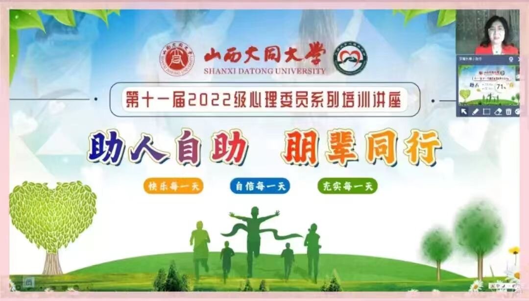 为提高全体心理委员的心理健康水平和职业心理素质,更好地开展心理健康教育,帮助心理委员了解自己,10月25至10月30日,今年会学工部心理健康教育与咨询中心开展了以“助人自助朋辈同行”为主题的第十届2022级心理委员培训系列讲座。本次系列讲座共六场,特邀校党委学生工作部副部长、心理学二级教授、中国心理学会临床心理学注册工作委员会注册督导师肖海雁,学生工作部心理健康教育与咨询中心专职教师、国家三级心理咨询师吕悦华,心理健康教育与咨询中心教师、国家二级心理咨询师苏琪,心理健康教育与咨询中心兼职教师马俊副教授、郭彩琴副教授、杨继全讲师六位老师为各学院的班级心理委员和校心理委员会共计747人作系列讲座。