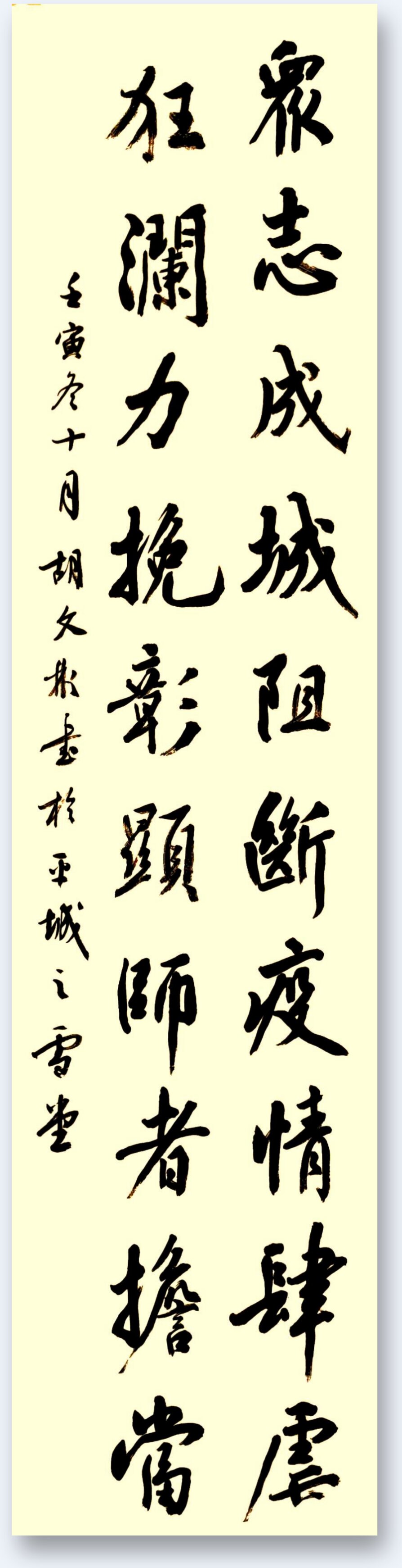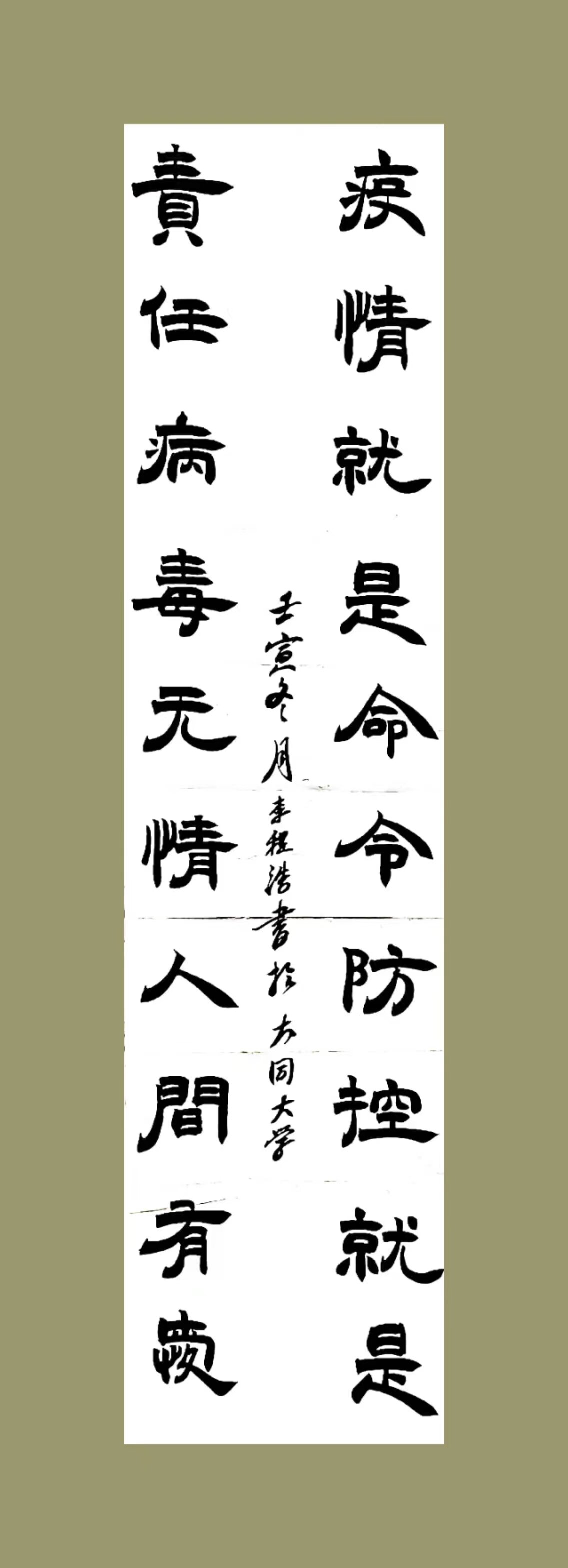 为同心战疫,鼓舞士气,美术学院师生连日来以墨抒怀,创作出大量优秀抗疫书法作品,希望通过翰墨传递温暖,凝聚力量,共抗疫情,致敬抗疫一线的最美逆行者!校园网编辑部从这些书法作品中择选出14幅以飨读者。