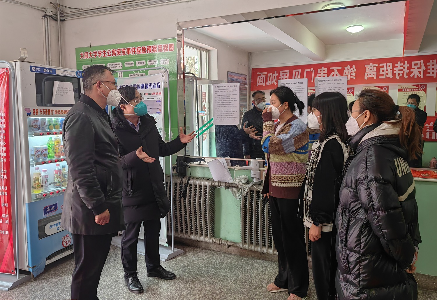 11月23日,校党委书记赵水民,校党委副书记、校长姚丽英以及其他在校的校领导寇福明、张旻、石凤珍、史水鸿、雷建设深入包联学生公寓、餐厅、健康监测区、浴室、超市等人员密集场所,就御东校区和新平旺校区全面消毒消杀、卫生清洁工作进行专项检查督导。