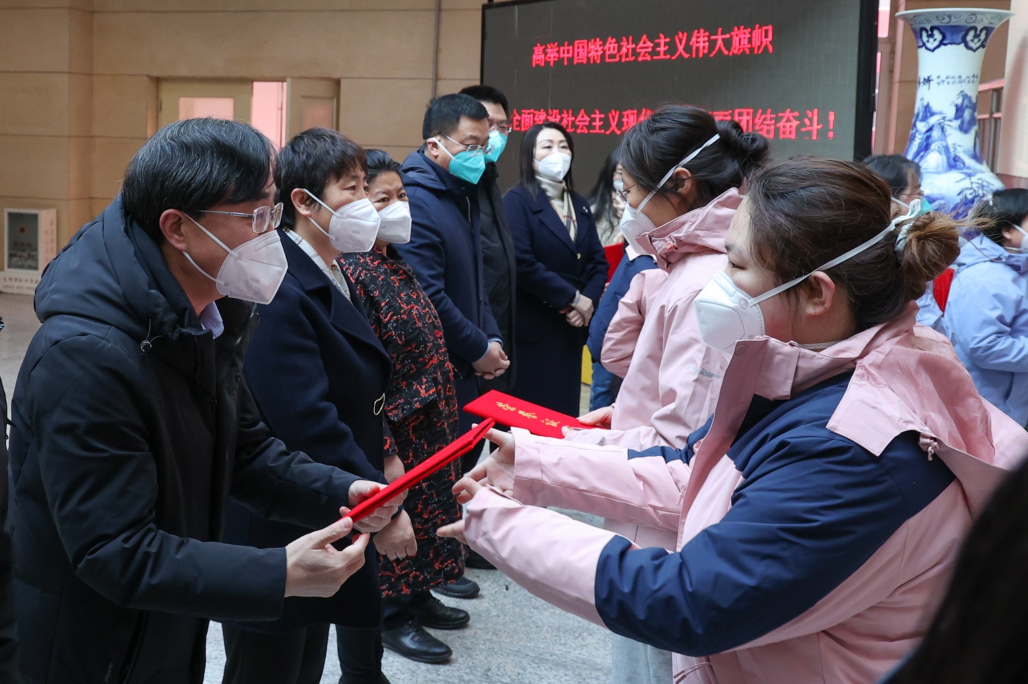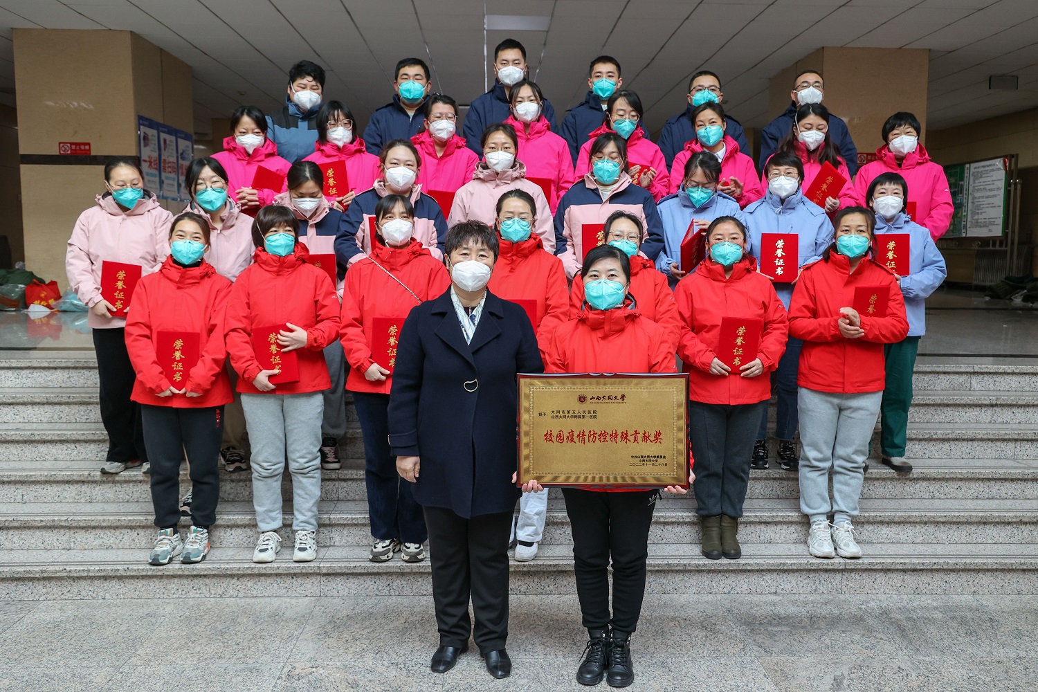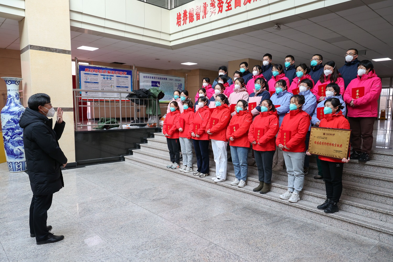仪式上,医疗队组长刘凤相发言,对校党委、第五人民医院、学校师生的支持与配合表达了感谢。姚丽英代表学校向大同市第五人民医院颁发了“校园疫情防控特别贡献奖”。校领导为医疗队成员颁发了“jinnianhui今年会疫情防控最美逆行者”荣誉证书。校工会为医护人员送上了保暖冬衣。