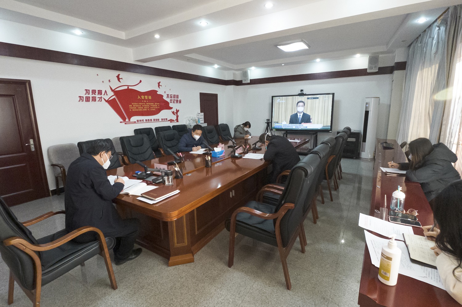 会议以线上线下相结合的方式进行。校党委理论学习中心组成员、各部门负责人、各学院党政负责人参加会议。(文/赵鑫 图/郝晓阳)