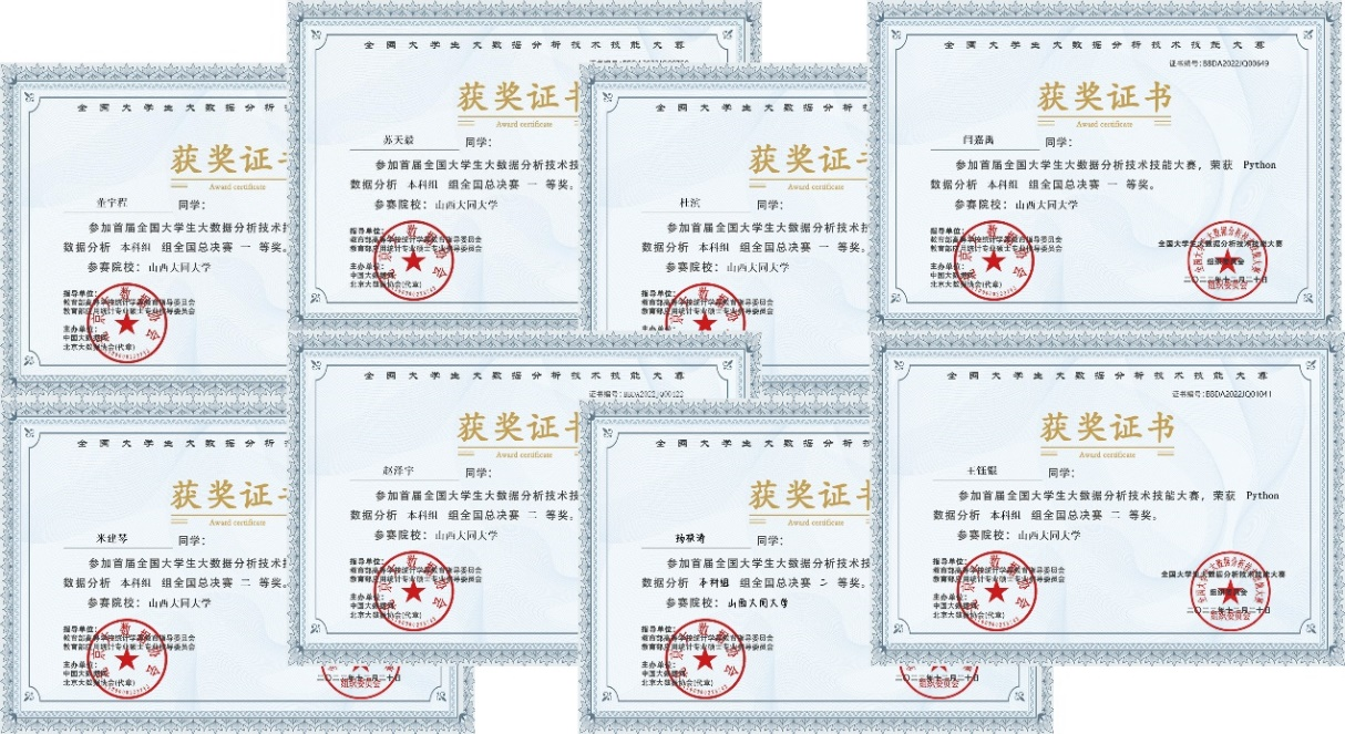 近日,首届全国大学生大数据分析技术技能大赛全国总决赛圆满落幕。来自北京大学、南开大学、复旦大学、中央财经大学等400多所高校的千余名省赛一等奖获奖学生共济一堂,角逐全国总决赛最高荣誉。计算机与网络工程学院8名学生组成的jinnianhui今年会代表队参加了此次全国总决赛。经过激烈角逐,今年会8名参赛选手全部获得了国赛奖项,其中全国一等奖4项,二等奖4项,获奖率高达100%。据了解,省赛一等奖获奖学生789人,参加国赛获得一、二、三等奖分别有222,244,139人,获奖率分别为28%、30%、17%。