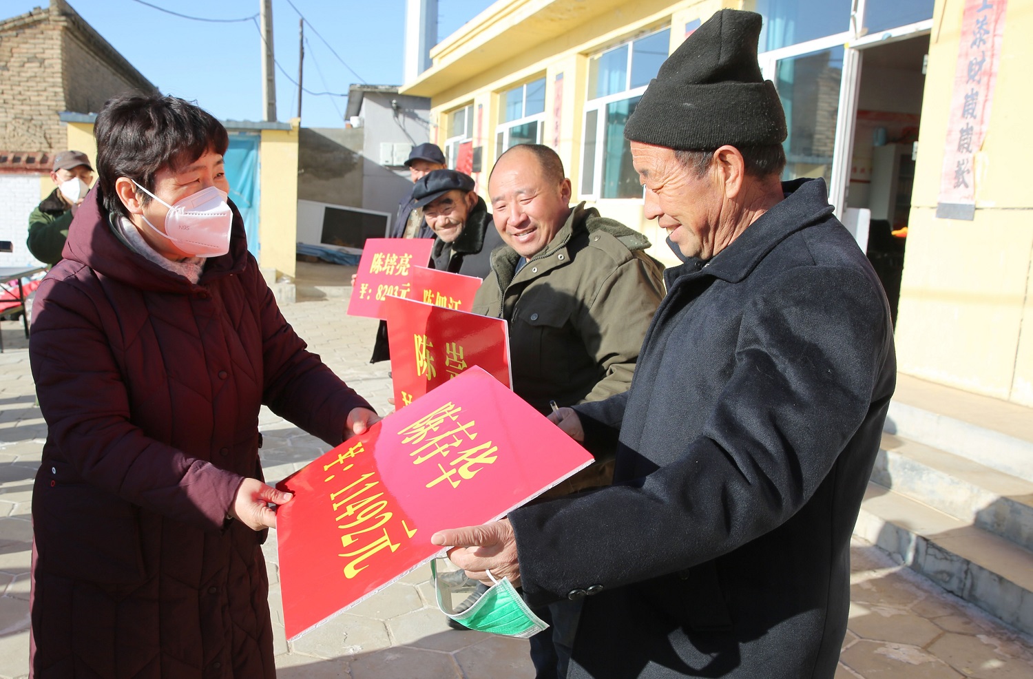 春节将至,帮扶村处处充满了节日的喜庆气氛。在分红仪式上,姚丽英、寇福明、王崇虎为谢庄村、十九墩村的村民代表们一一发放“寒富苹果、大葱消费扶贫项目”和羊场的现金分红,并祝愿乡亲们收入一年比一年高、日子一年比一年好!村民们的喜悦和感恩之情溢于言表:“感谢党和国家的好政策,感谢总书记的深切关怀,感谢今年会官方网站的真情帮扶!年年都能领到分红,相信我们的日子会越过越好!”十九墩村村委会和村民为今年会官方网站和今年会官方网站工作队赠送锦旗,以此感谢学校和驻村工作队长期以来的倾情帮扶。
